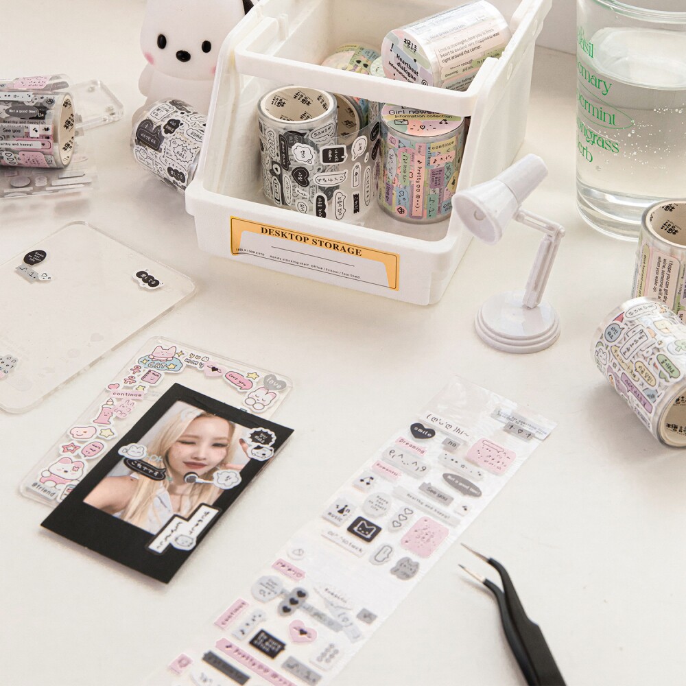 📚 讯息收集手帐胶带ins可爱英文涂鸦盐系手账咕卡拼贴装饰素材贴纸