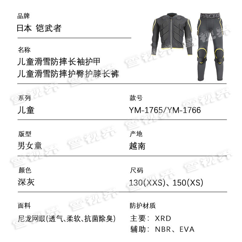 📚 雪视界 日本铠武者儿童滑雪护具XRD护甲防摔衣护臀护膝长裤男女孩