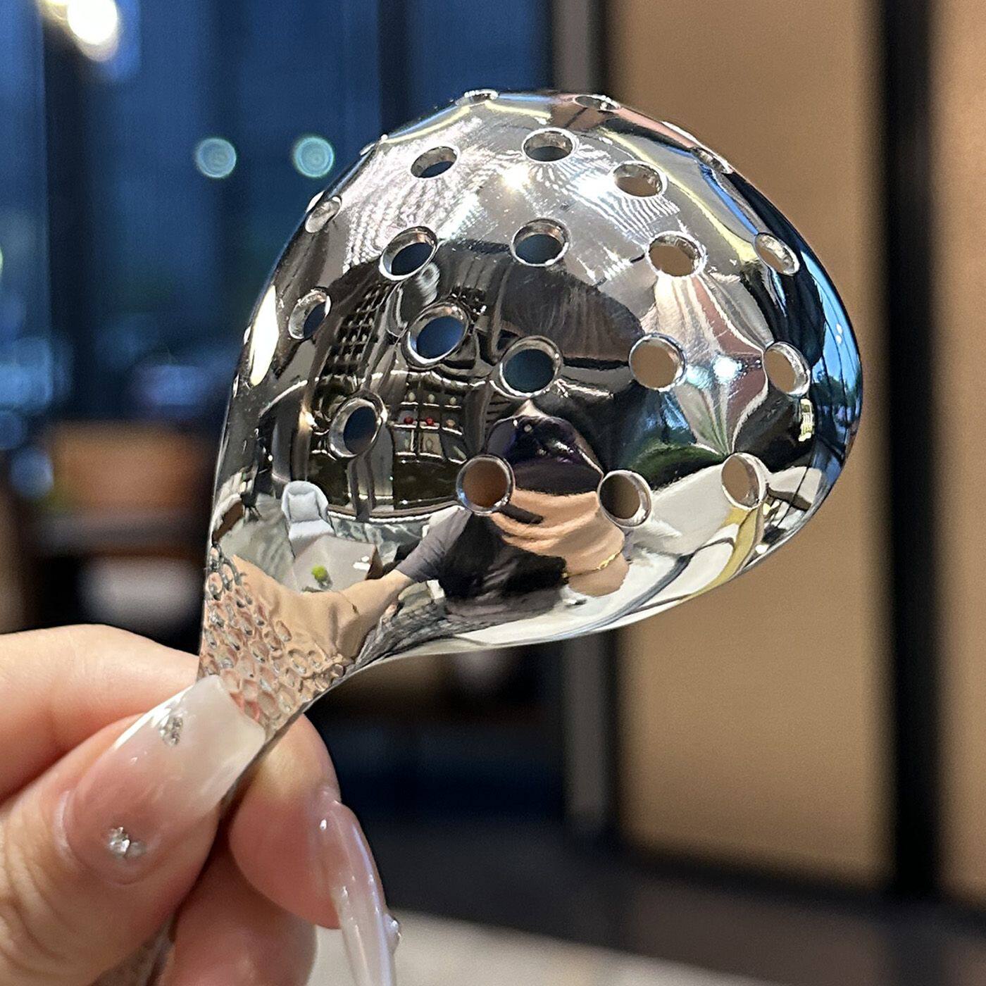 📚 新款锤纹不锈钢大头勺大漏勺食品级不锈钢桌面汤勺漏勺火锅勺耐用