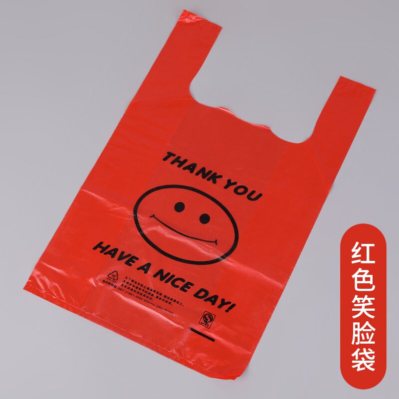 📚 鸿图天一塑业工厂店笑脸背T心袋透明G塑料袋笑脸袋马夹袋超市购U
