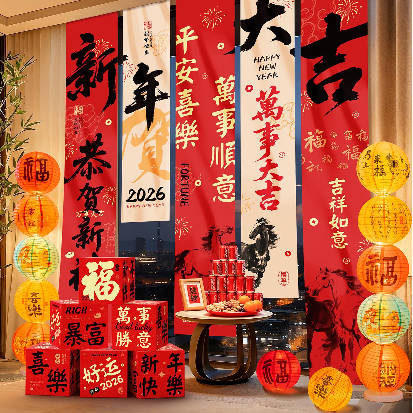📚 元旦新年装饰挂布马年春节过年彩带条幅公司年会氛围布置2026新款
