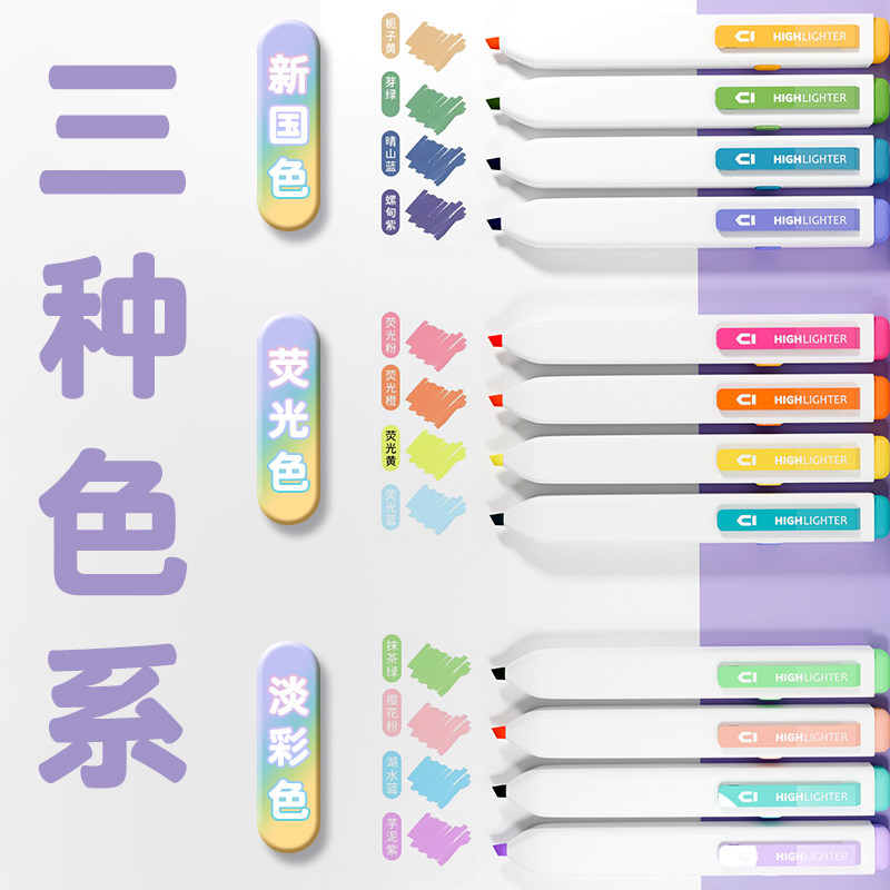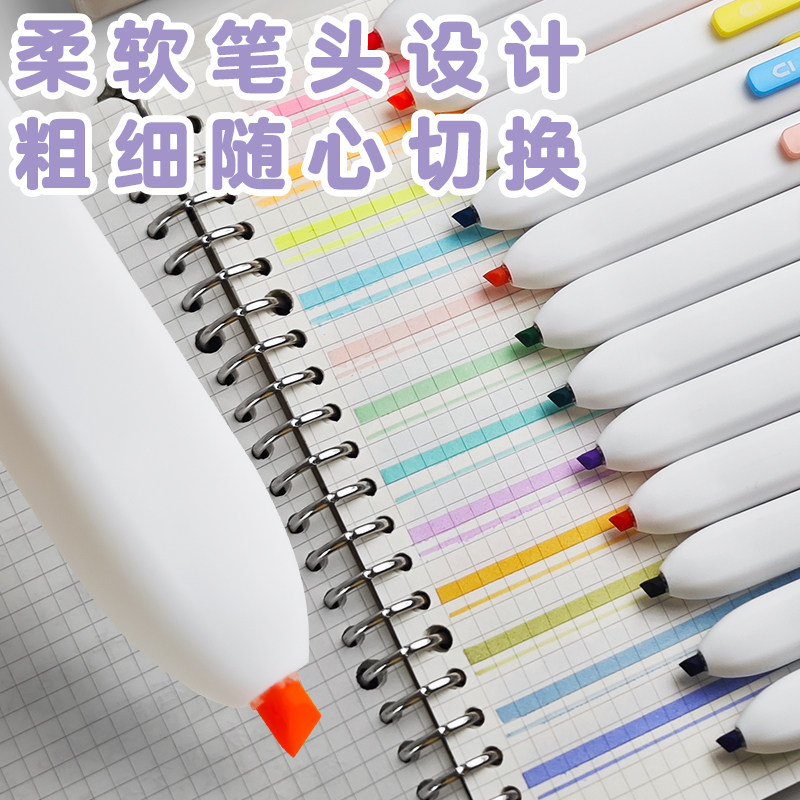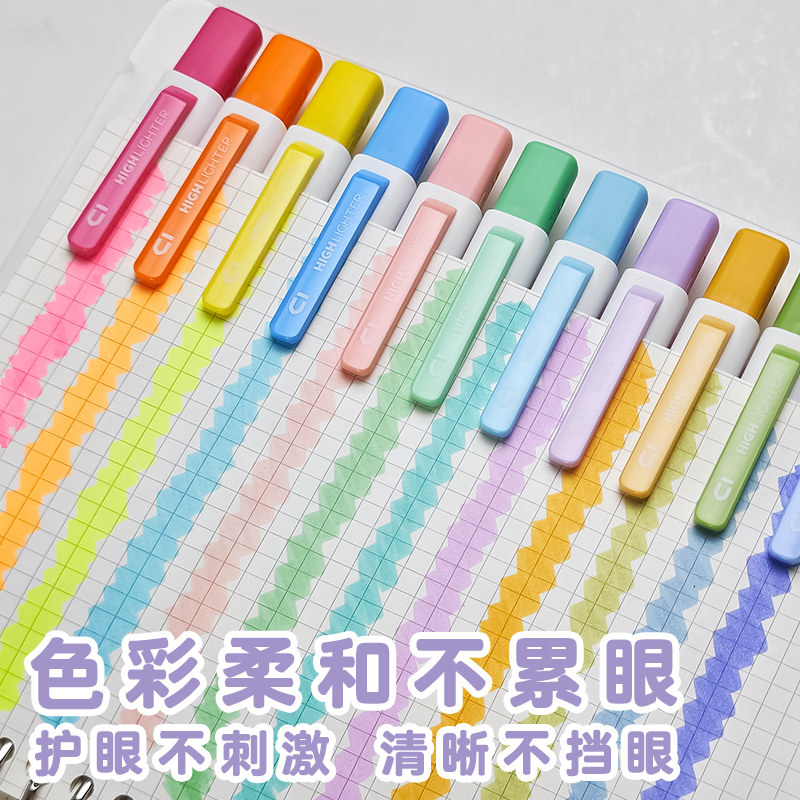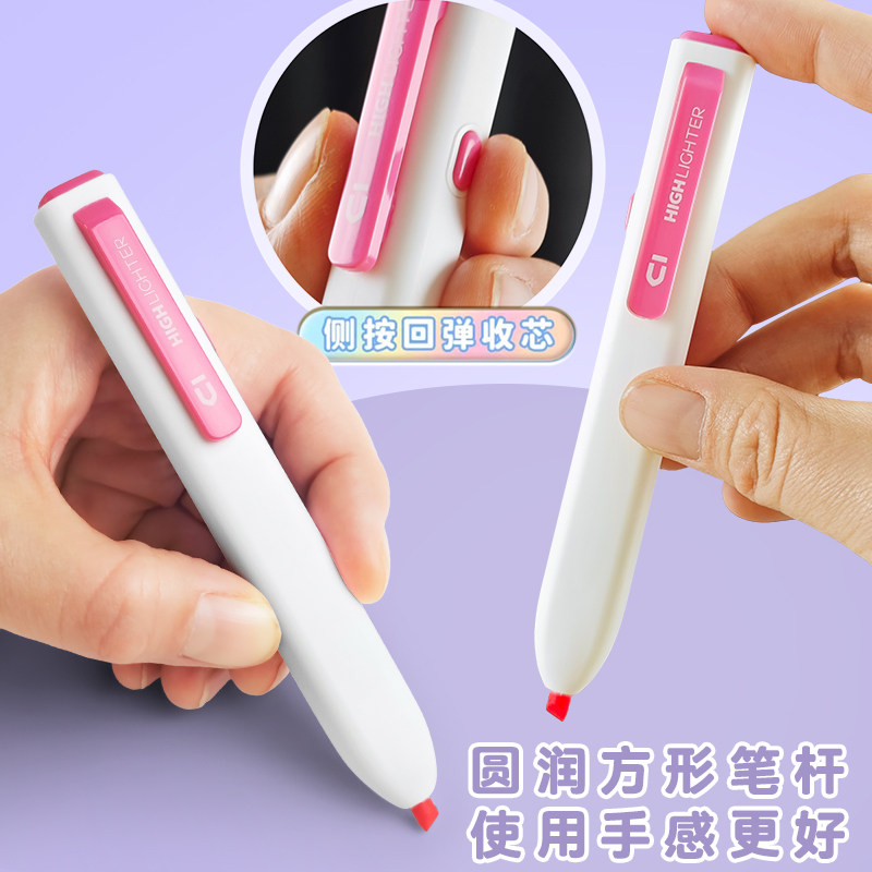 📚 晨光小方新国色按动荧光笔荧光标记笔学生用记号笔划重点小学生初中生手抄报专用笔多色高颜值荧光笔记重点笔