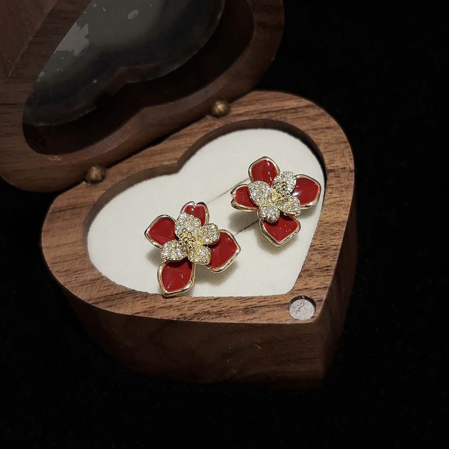 📚 红色喜庆耳钉订婚结婚秋冬山茶花耳夹耳环2025新款独特漂亮耳饰女