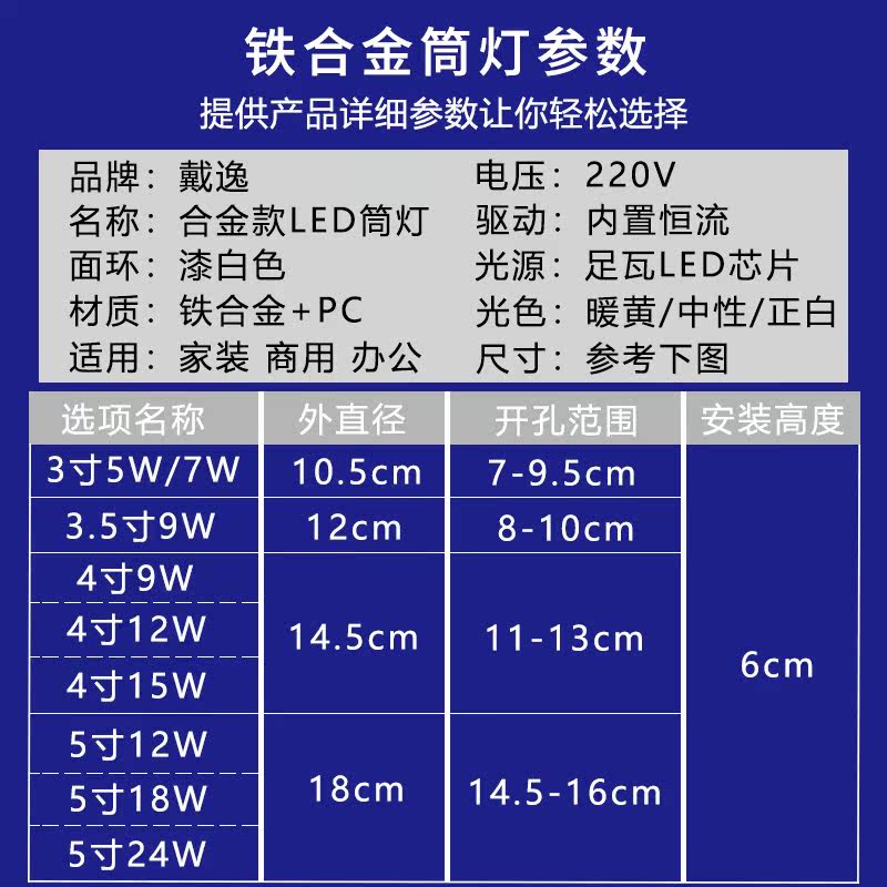 📚 LED筒灯3.5寸12w孔灯16店铺开孔洞灯7寸18CM15瓦桶灯嵌入式天花灯