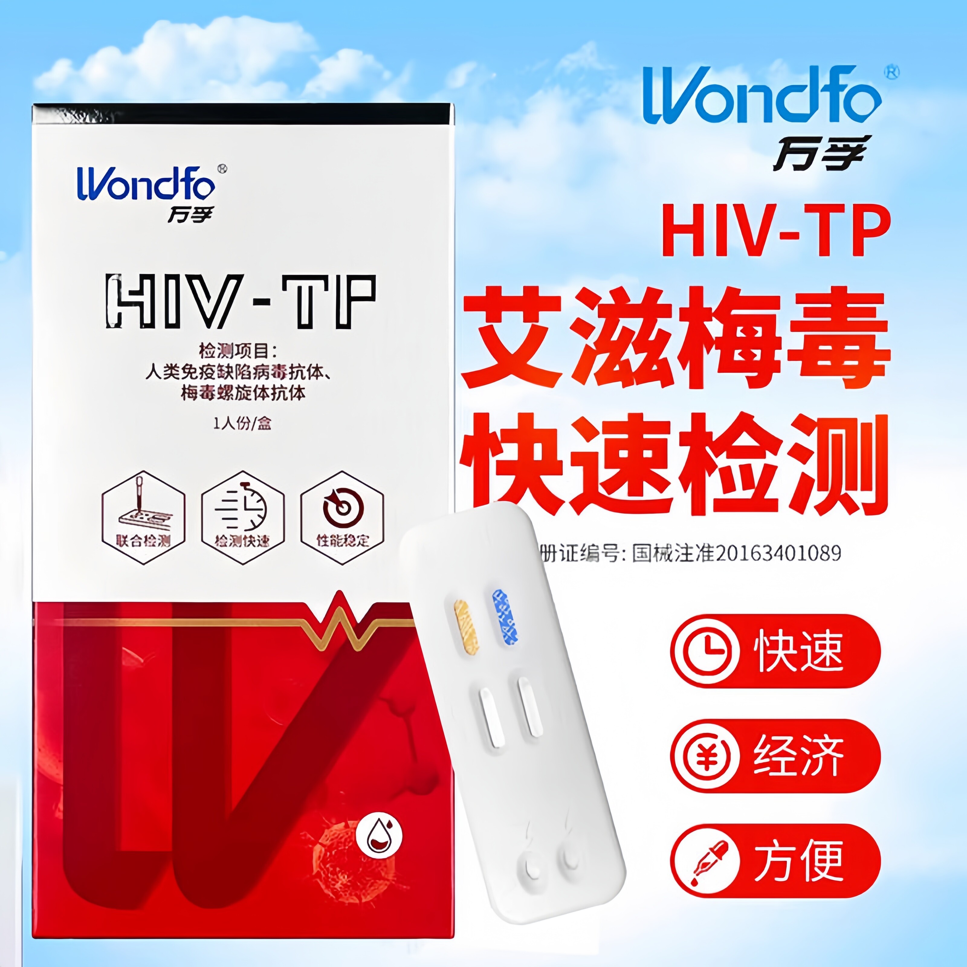 📚 万孚艾滋病检测试纸hiv梅毒自检自测四联四合一非hlv第四代第五代