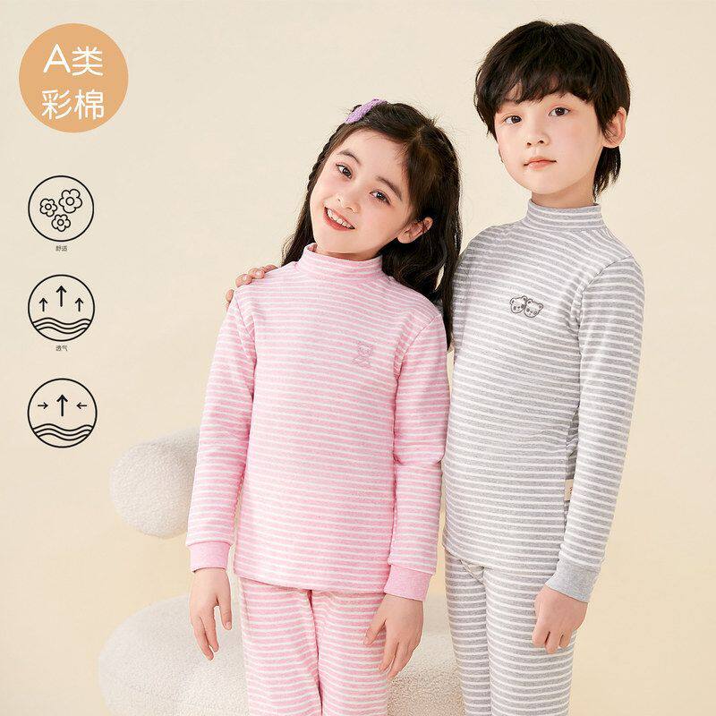 📚 儿童秋衣男童纯棉半高领女童全棉中领大童彩棉棉毛衫无骨冬季加厚