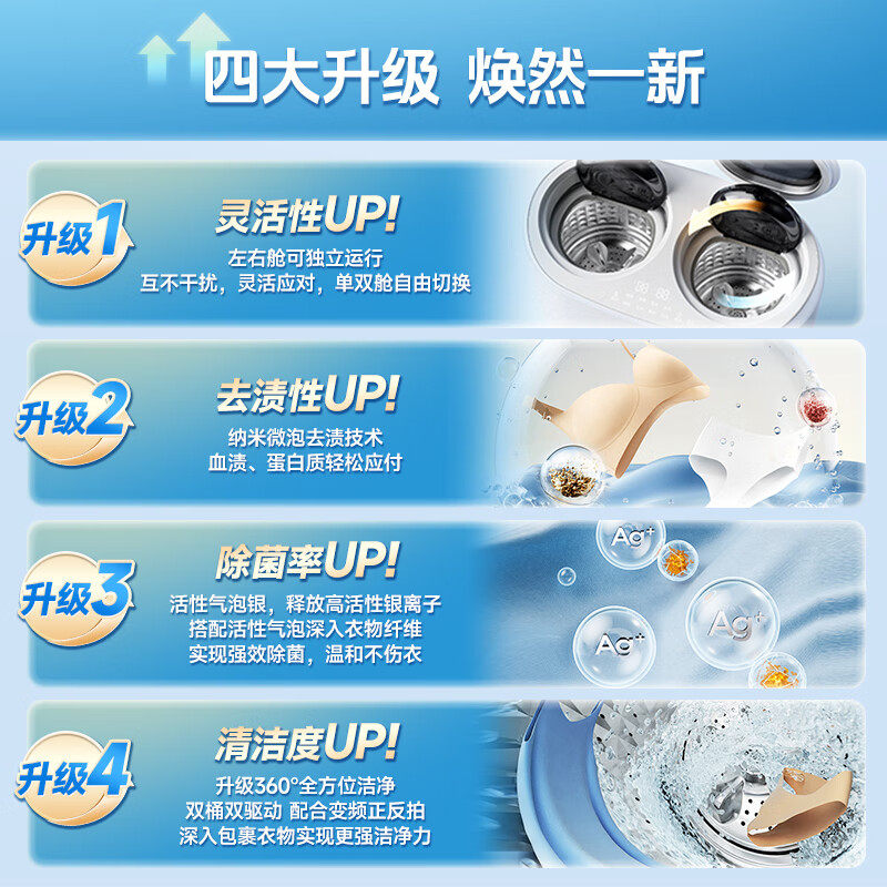 📚 美的双子座内衣裤双桶全自动洗衣机小型迷你婴儿宝宝一体分区洗