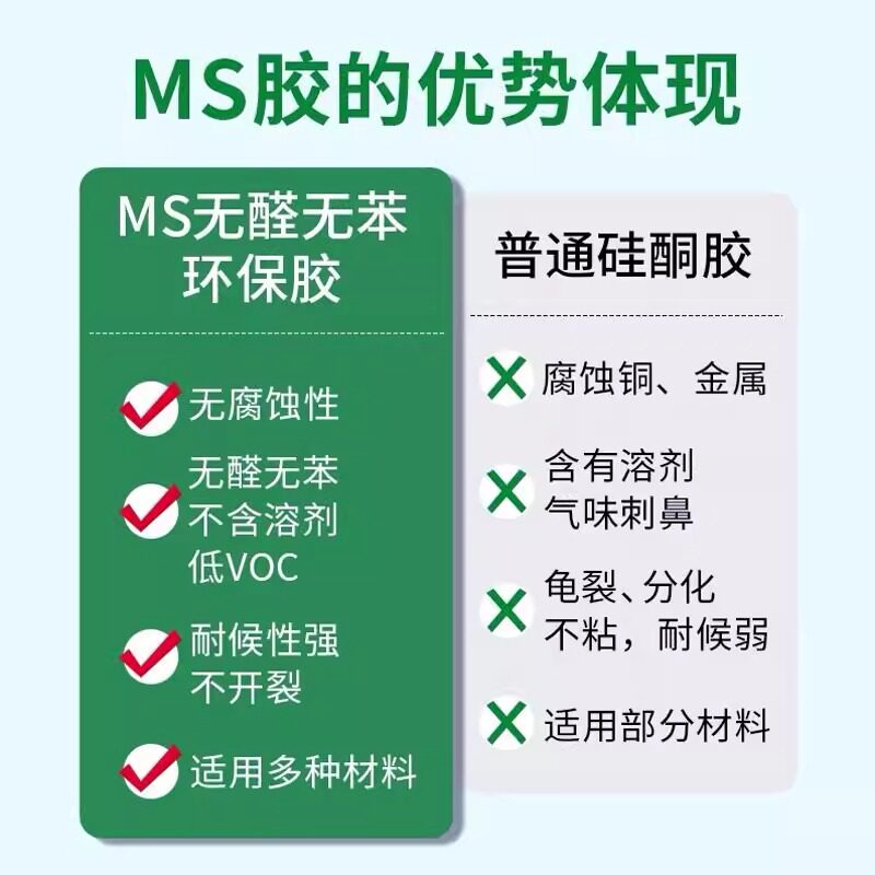 📚 绿康MS结构玻璃胶中性密封耐候美容胶环保防水防霉全屋室内儿童房