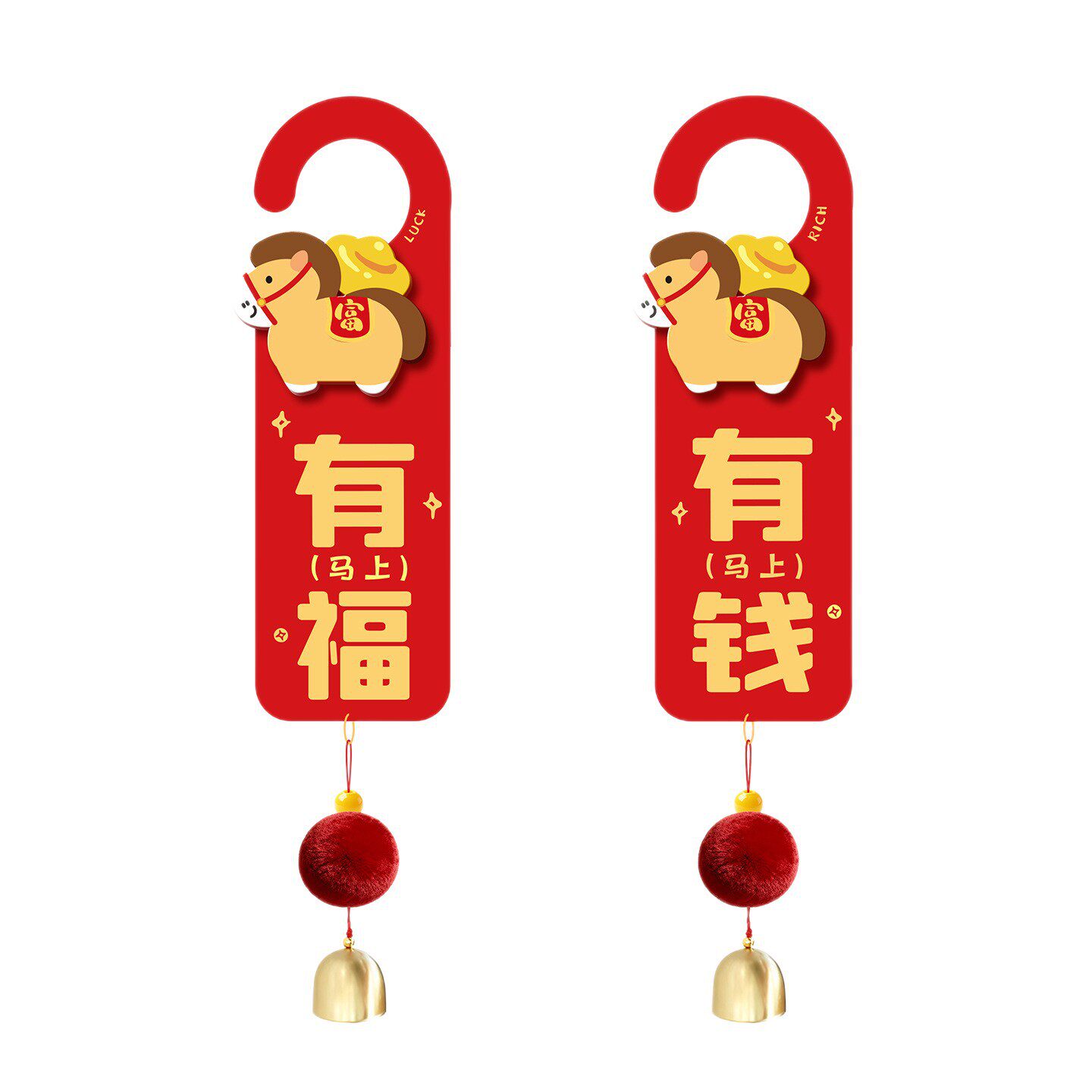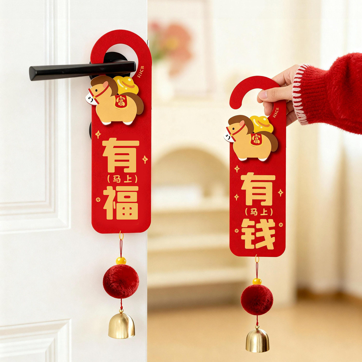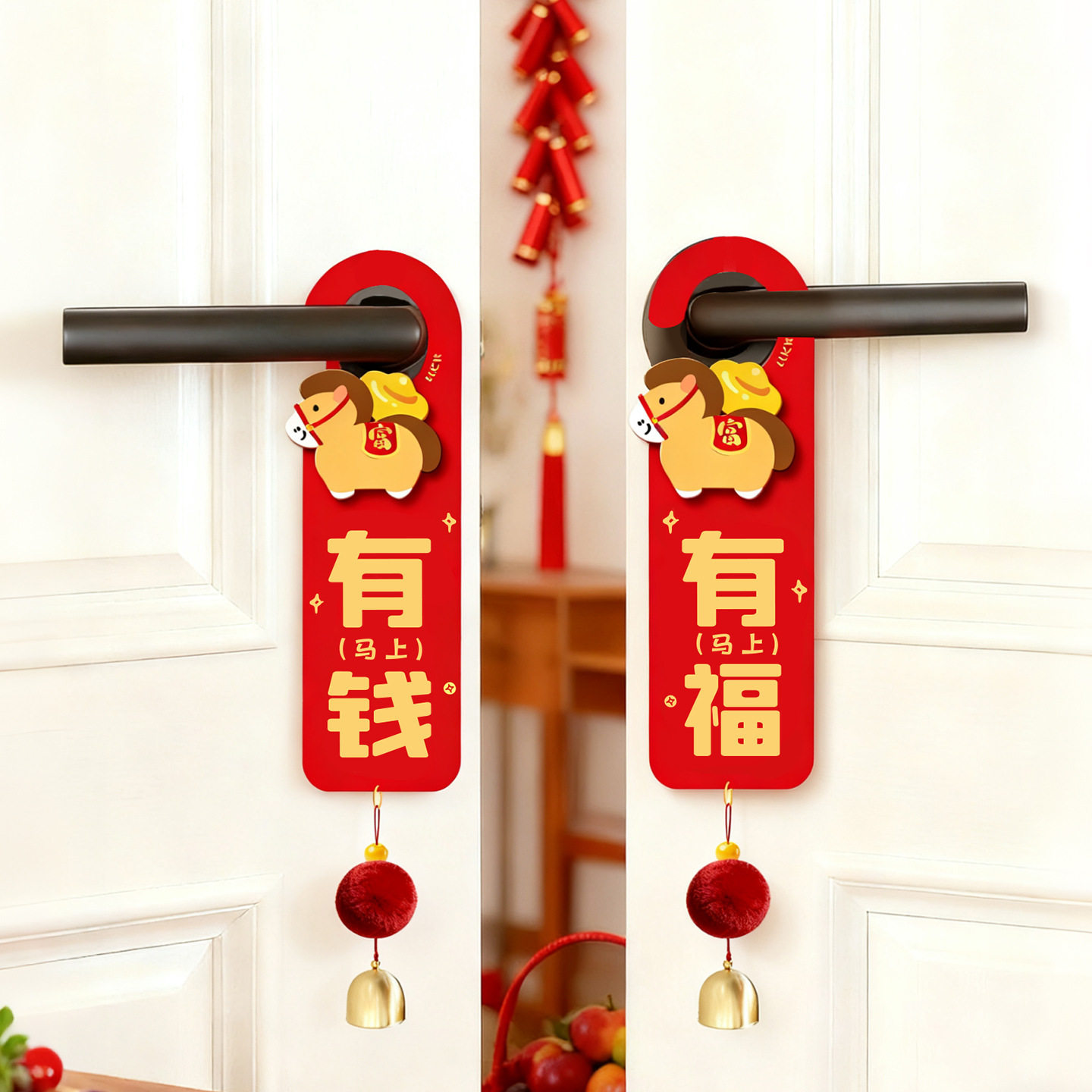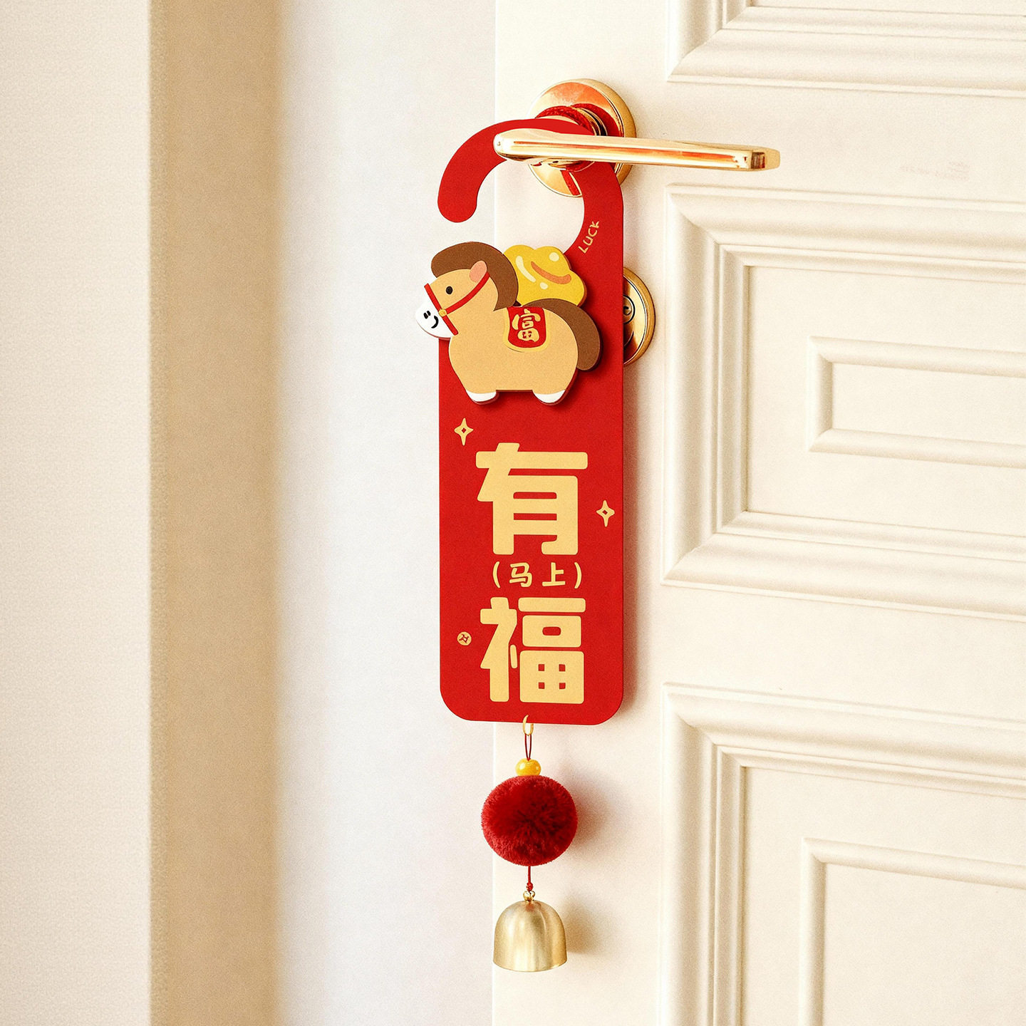📚 3D新款年装饰品门把手挂件马年新房新居乔迁之喜马上有福有钱门挂