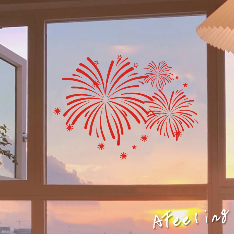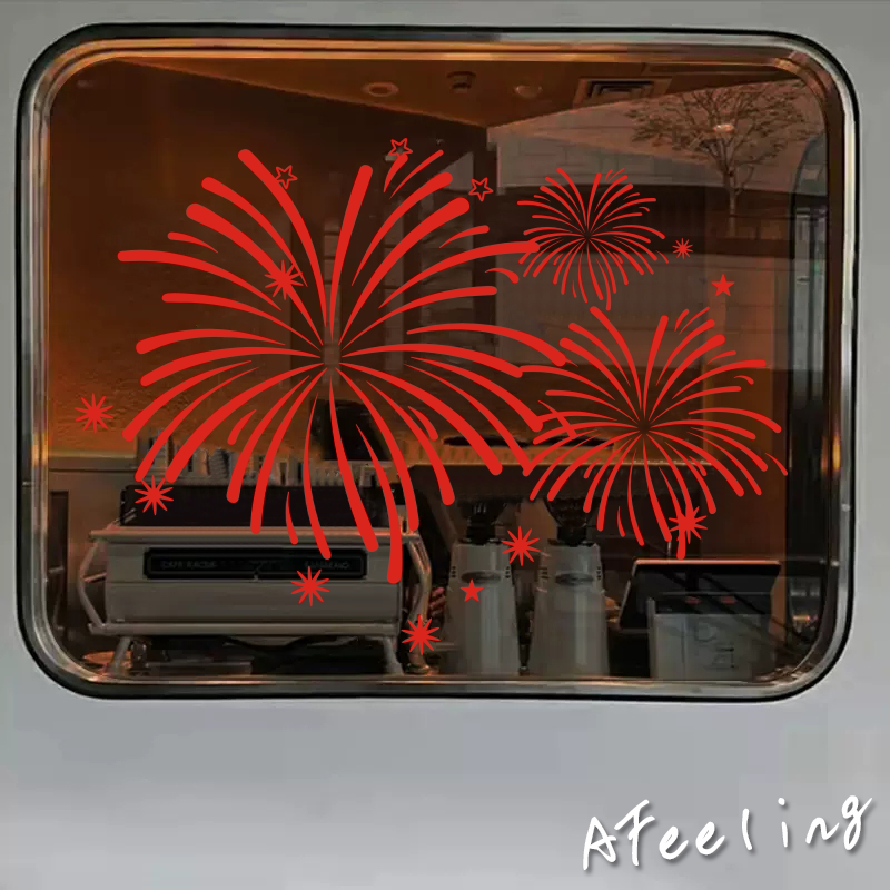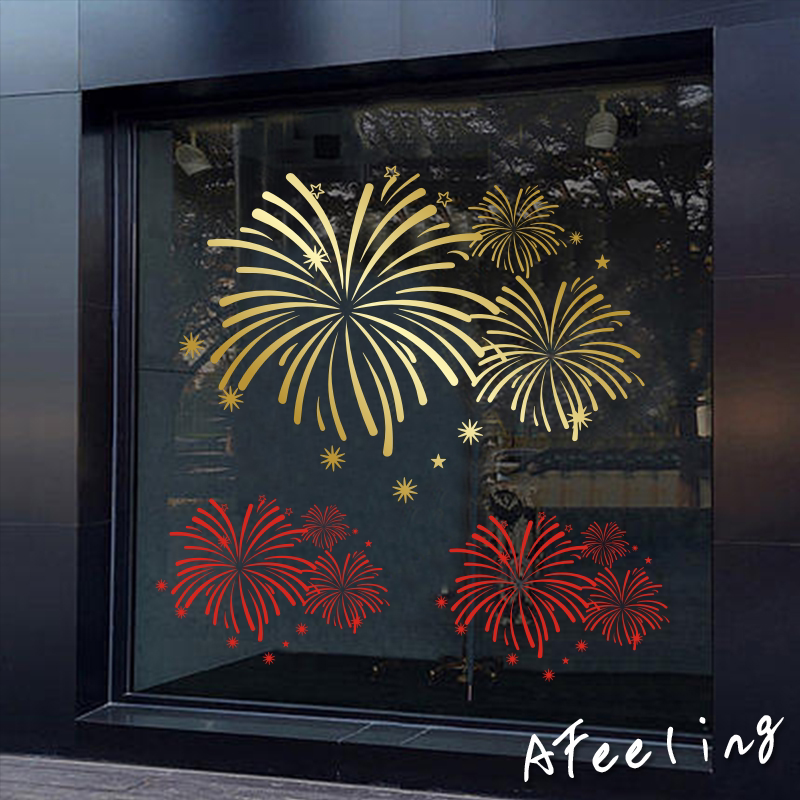 📚 春节新年装饰贴纸烟花庆典新年玻璃橱墙窗贴节日气氛场景布置礼花