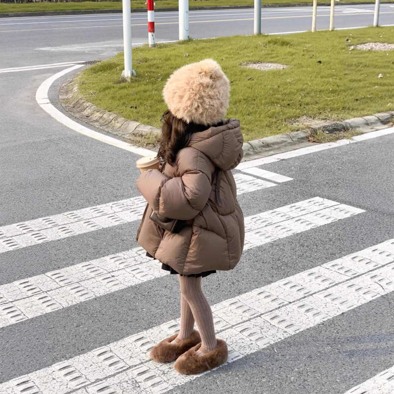 📚 2025冬季女童美拉德风羽绒棉咖色棉衣面包服轻薄保暖连帽棉服外套