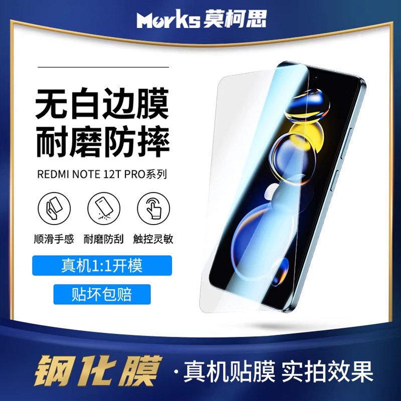 📚 莫柯思适用红米Note 12T Pro钢化膜Redmi Note12 Tpro+无白边手机膜电镀防指纹疏油层全屏防摔爆绿光护眼贴膜