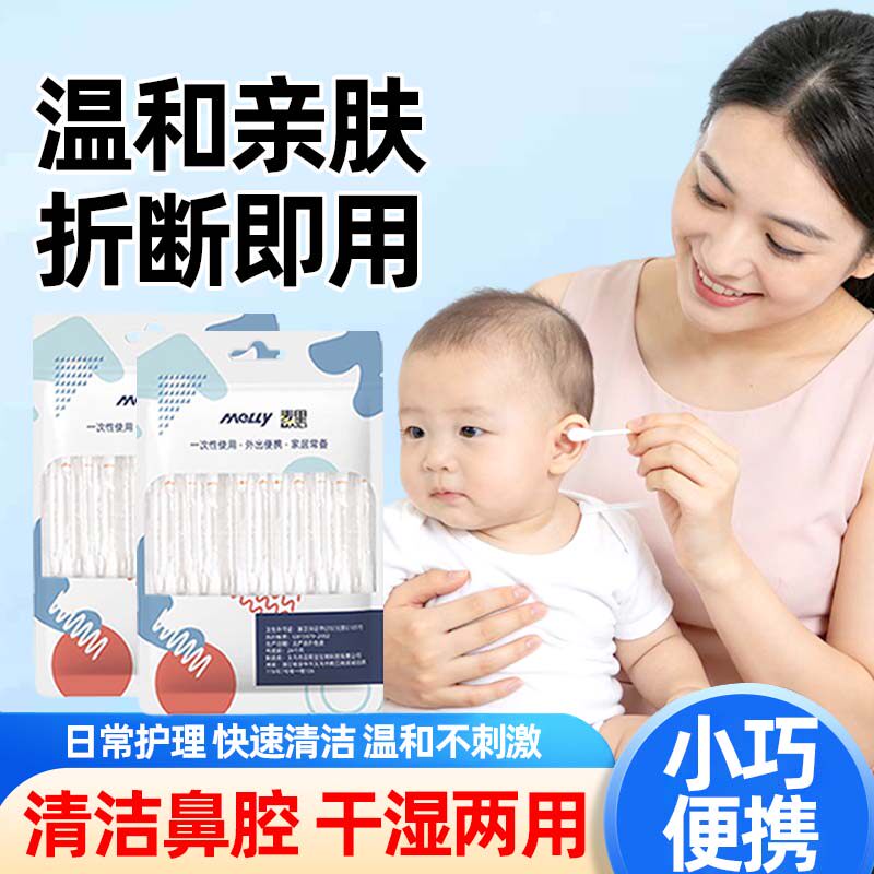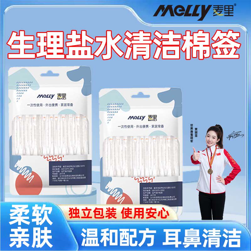 📚 麦里盐水清洁棉签婴儿耳鼻清洁护理一次性棉棒独立装温和不刺激