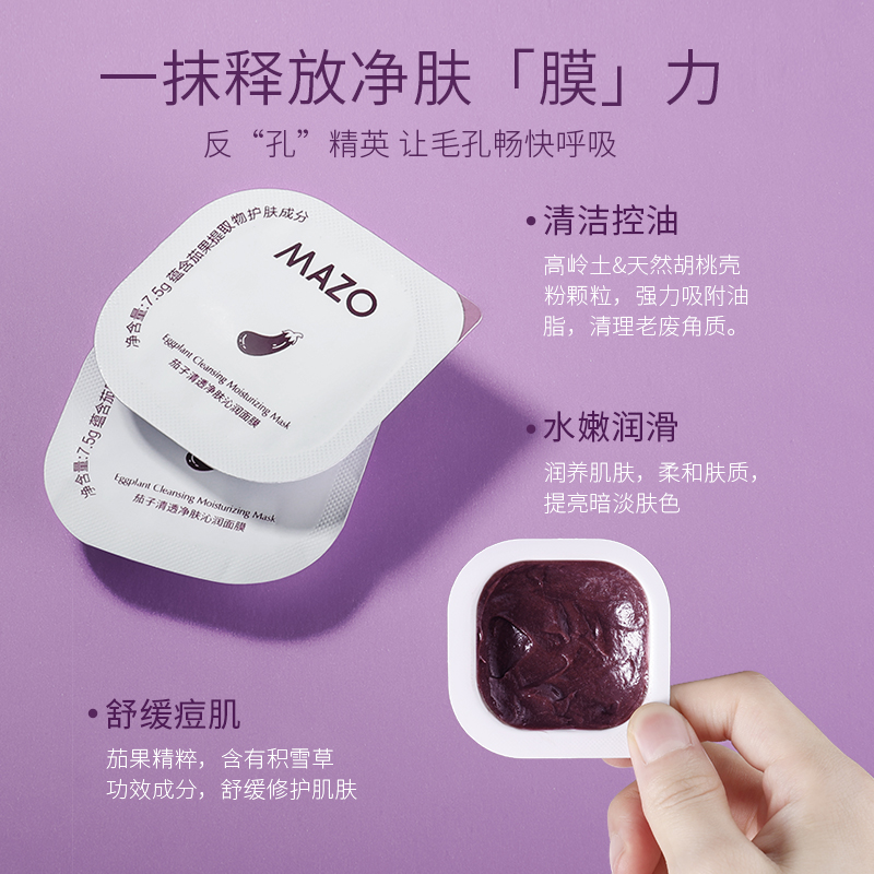 📚 MAZO茄子泥膜透净清洁涂毛孔抹式面膜套装男女护肤补水保湿去角质