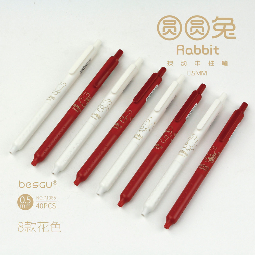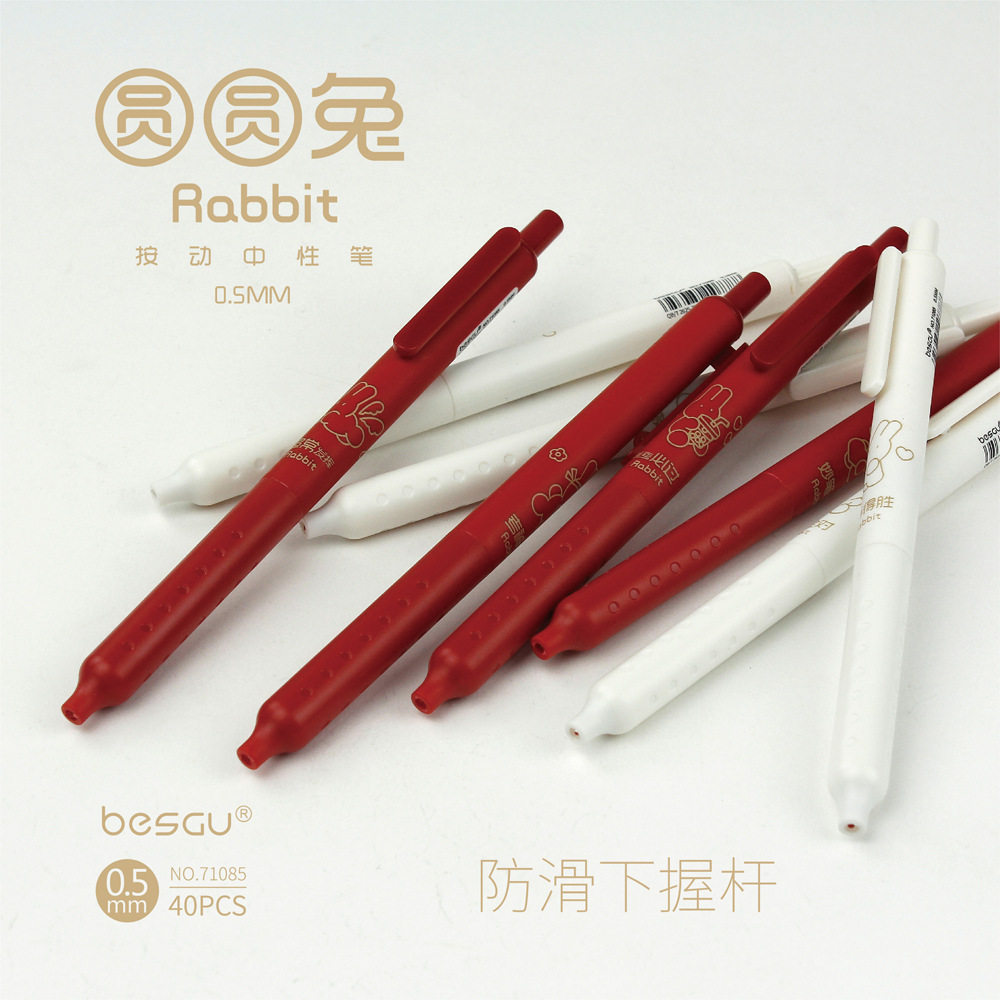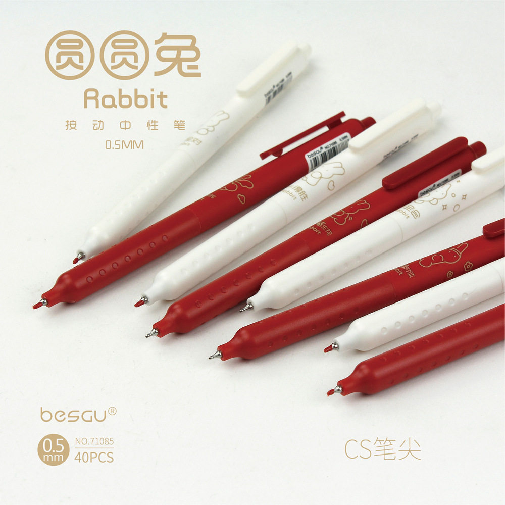📚 besgu圆圆兔逢考必过水笔按动速干黑塑料中性笔no.71085