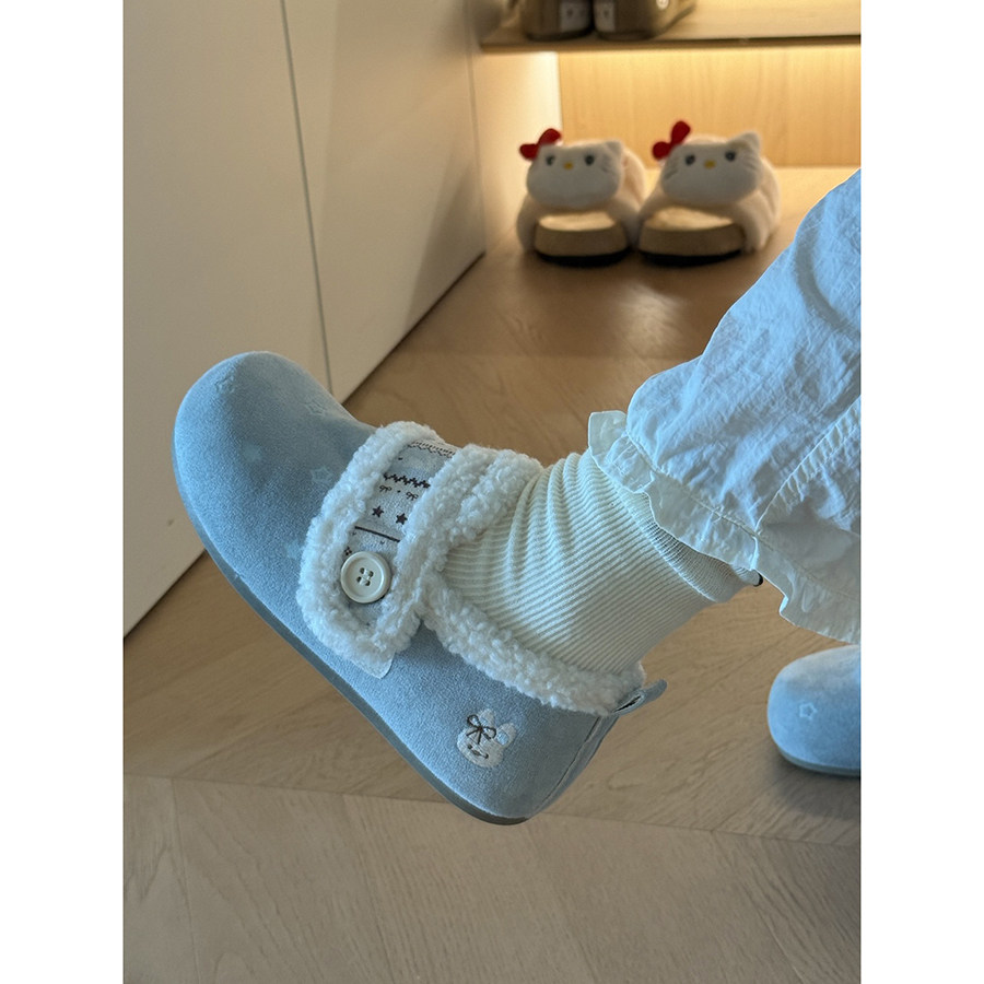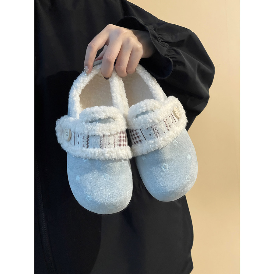 📚 路十三费尔岛小兔女鞋2025冬季保暖二棉毛毛鞋一脚蹬加绒勃肯鞋