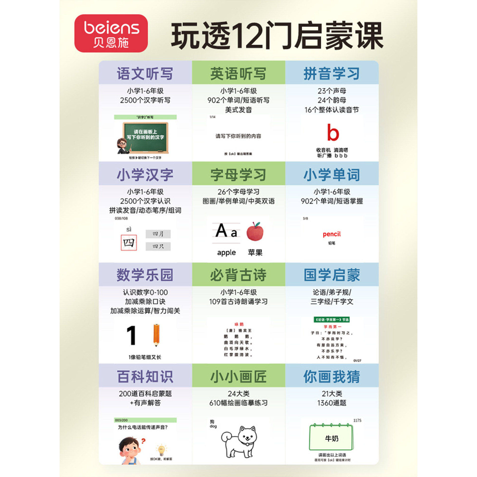 📚 贝恩施画板儿童绘画教学全能学练机宝宝汉语成语拼音识字训练学习