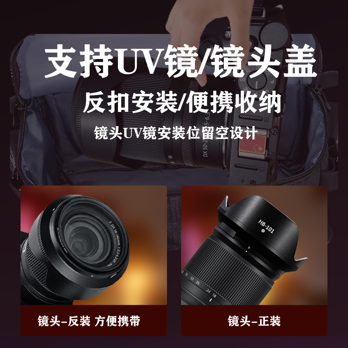 📚 耐盾色遮光罩适用于尼康Z DX18-140镜头Z50 Z50II Z30相机62UV镜