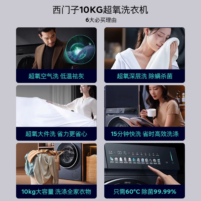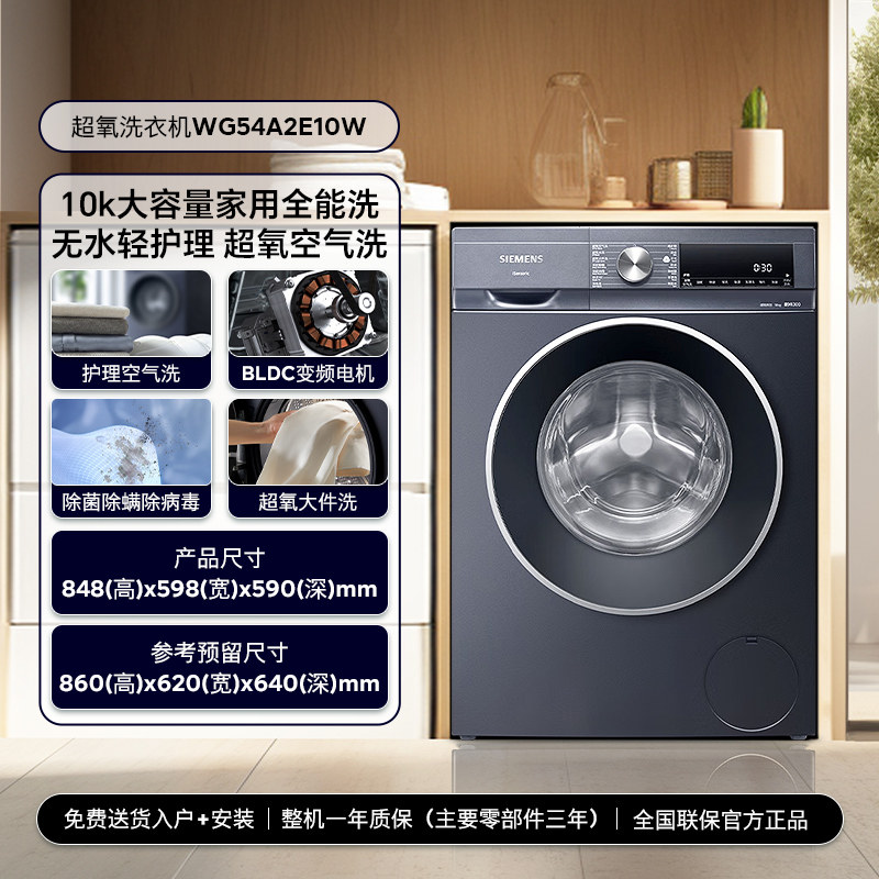 📚 西门子超氧洗衣机10公斤滚筒大容量全自动变频智能除渍WG54A2E10W