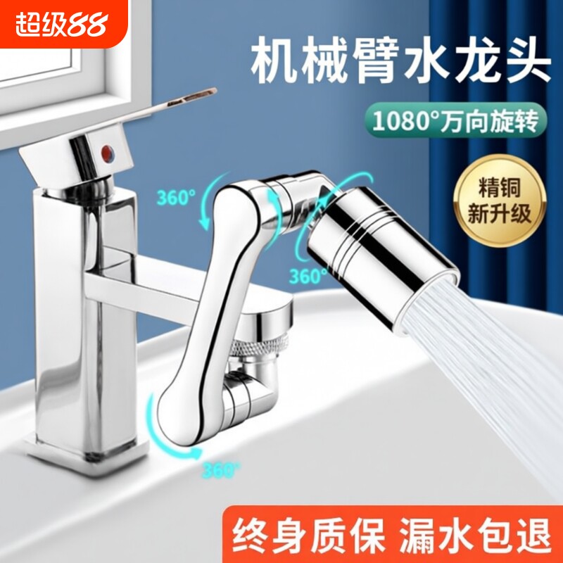 📚 机械臂万向水龙头延伸器防溅可旋转洗脸盆神器厨房折叠面盆阳台