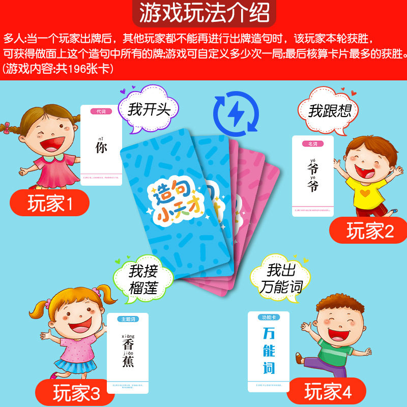 📚 疯狂造句小天才儿童连词成句卡牌亲子益智游戏卡片小学生训练桌游