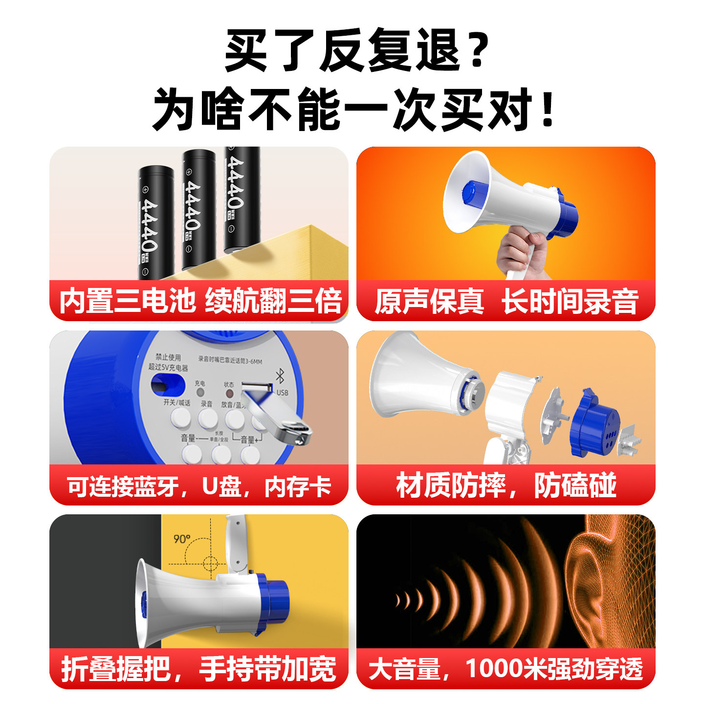 📚 沙雨喇叭扬声器三电池录音扩音器高音小喇叭地摊叫卖摆摊用喊话器