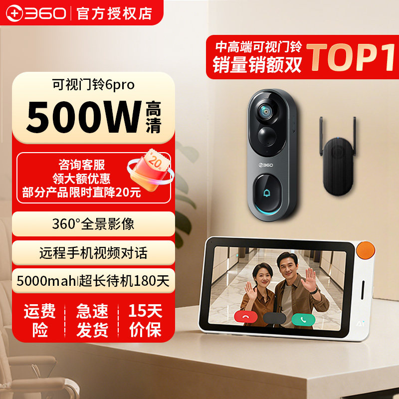 📚 360可视门铃套装智能显示屏电子猫眼500W超清摄像头6pro
