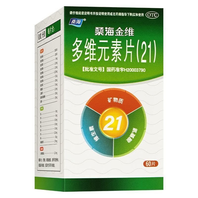 📚 桑海 桑海金维 多维元素片(21) 60片*1瓶/盒因维生素与矿物质缺乏