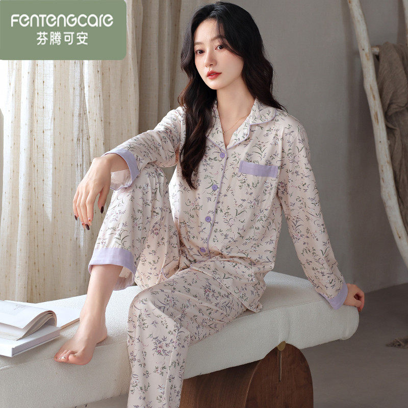 📚 芬腾可安春秋睡衣女2024年新款高级感纯棉长袖春季女士全棉家居服