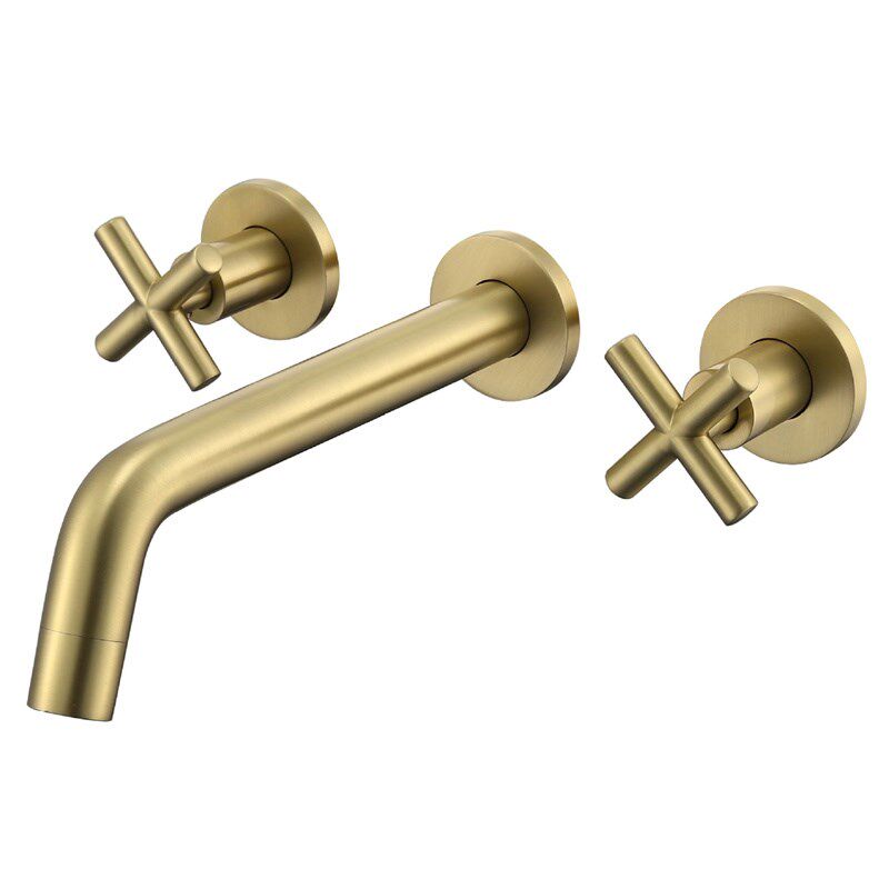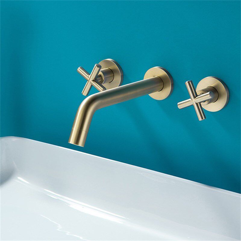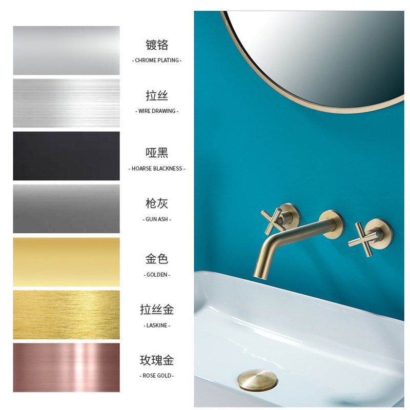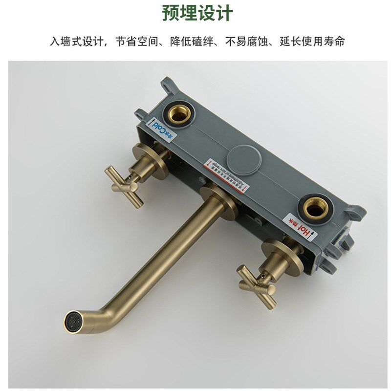 📚 贝西全铜暗装面盆水龙头枪灰十字手轮双把三孔连体旋转嘴酒店工程