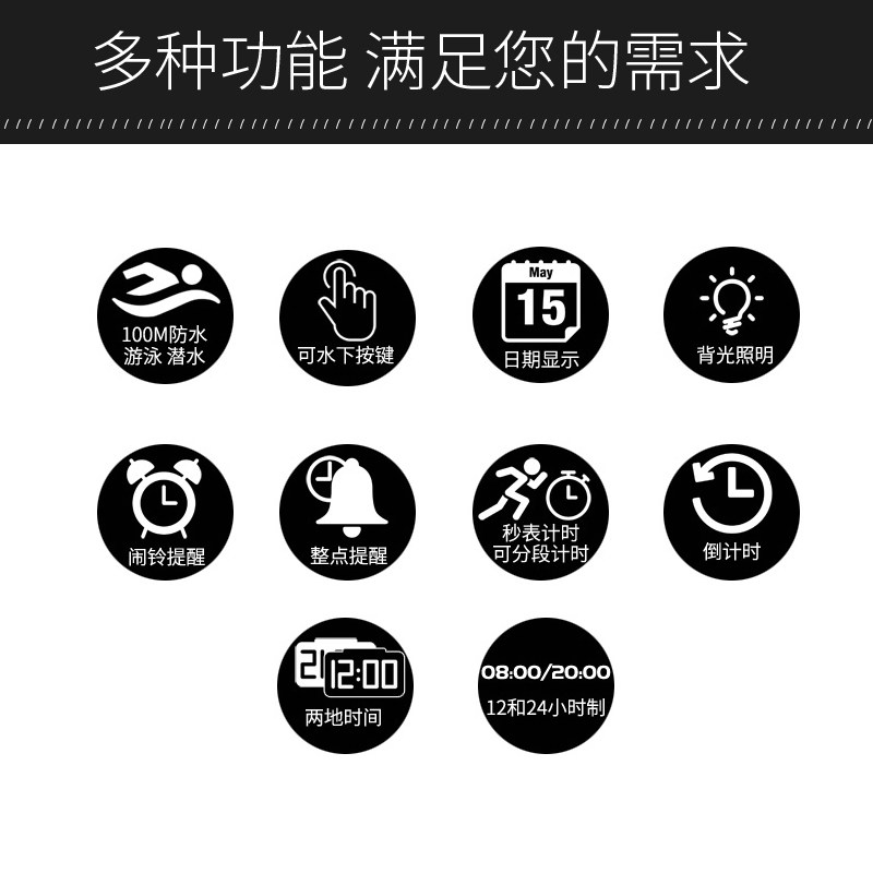 📚 XONIX精准男士经典多功能潜水游泳防水潮流学生运动计时电子表GJ