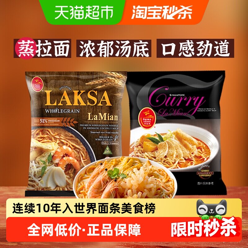 📚 百胜厨进口新加坡风味叻沙咖喱全麦蒸拉面非油炸方便泡面速食食品