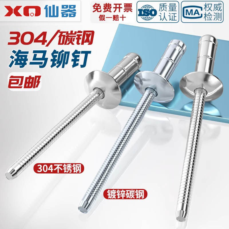 📚 海马铆钉 钢结构拉钉 304不锈钢/铁镀锌/全铝合金 结构型抽芯铆钉