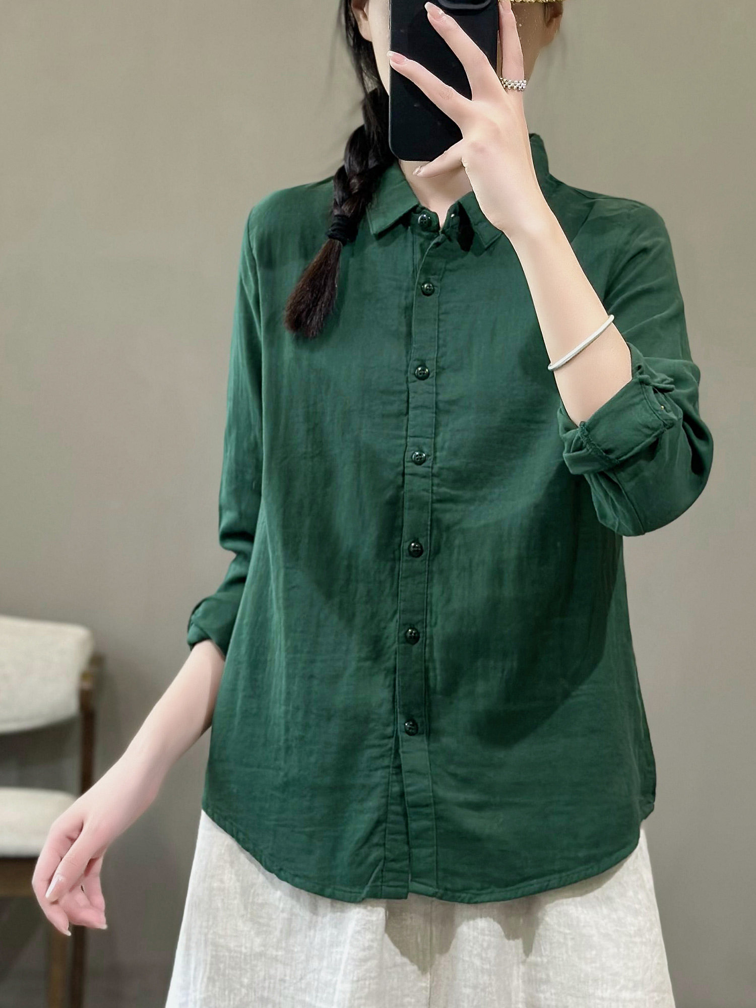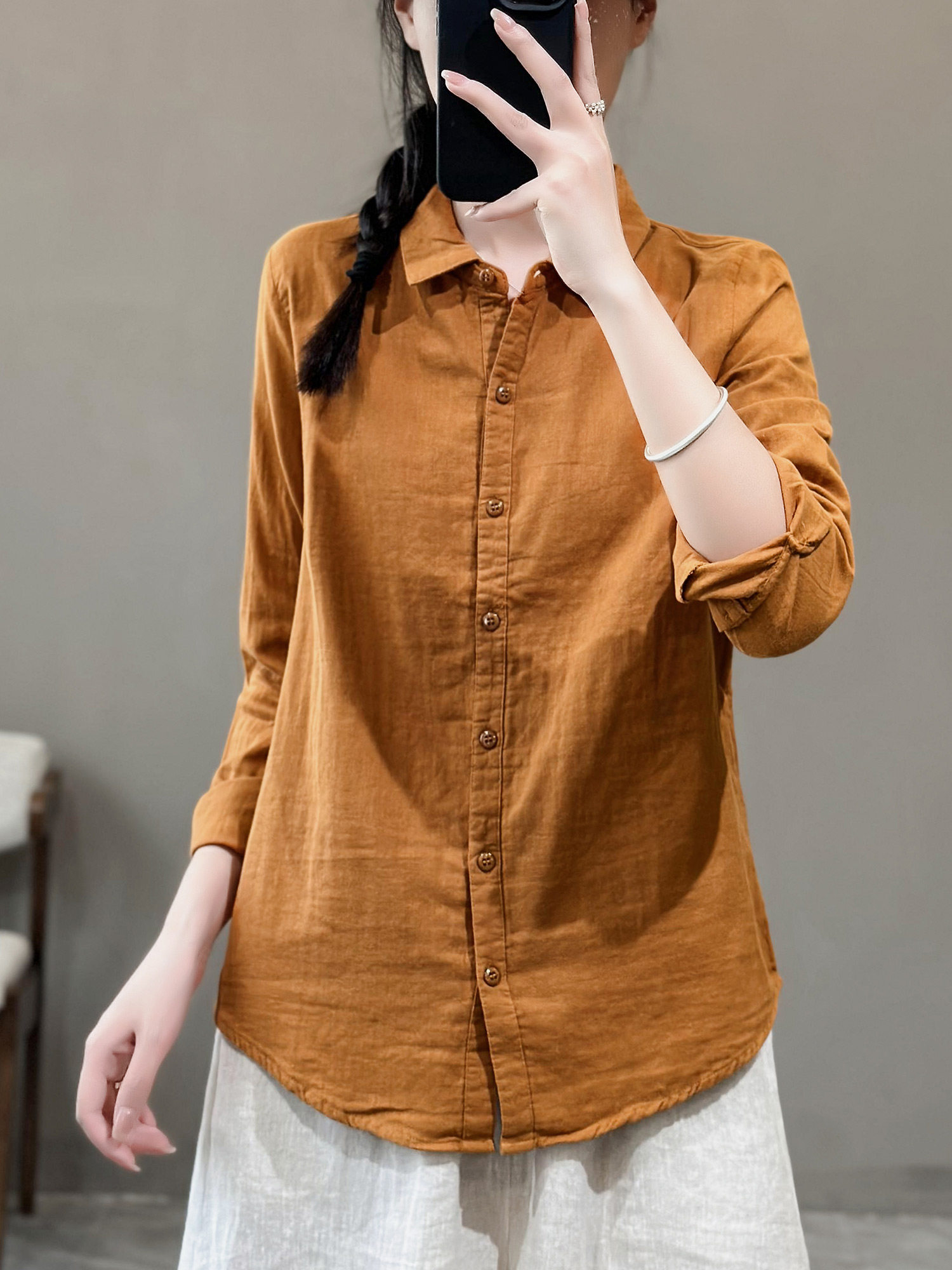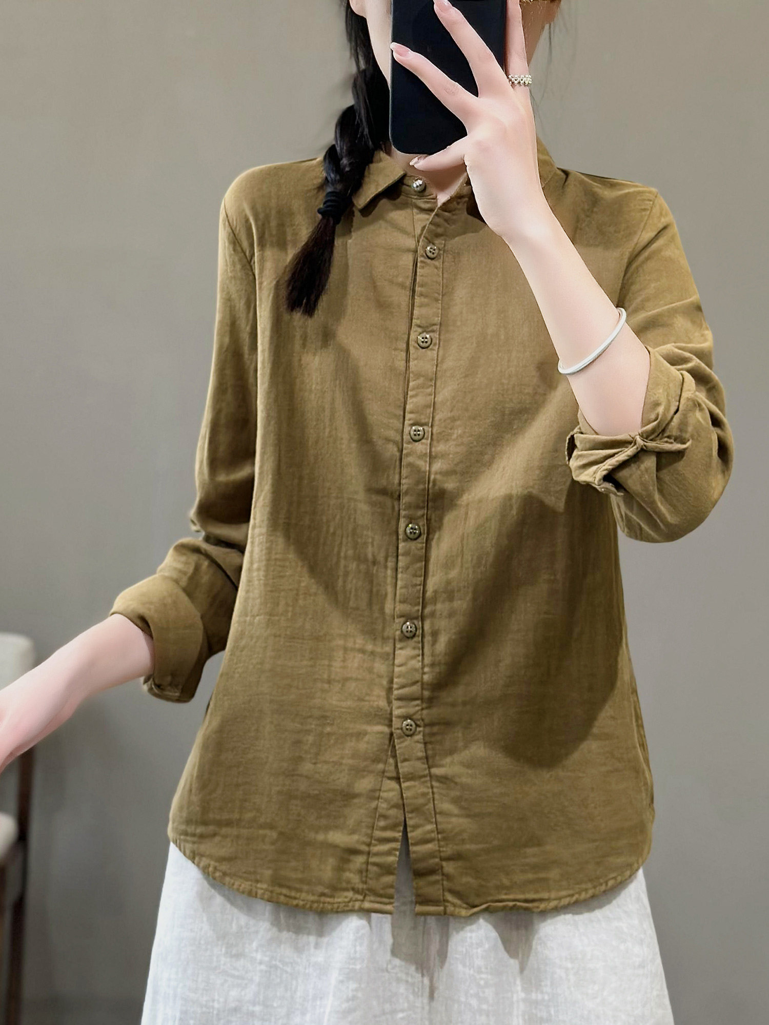 📚 花概念新款简约纯色翻领长袖棉纱衬衫通勤百搭气质显瘦开衫上衣女