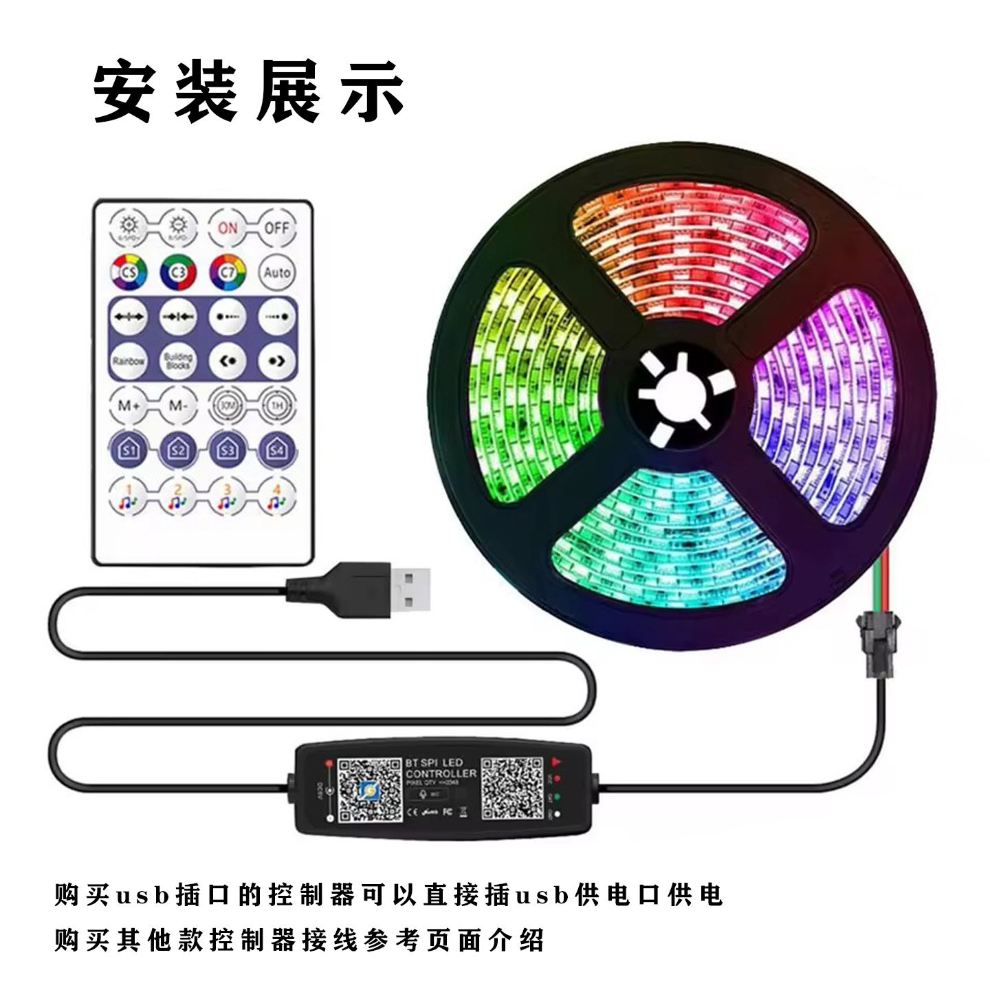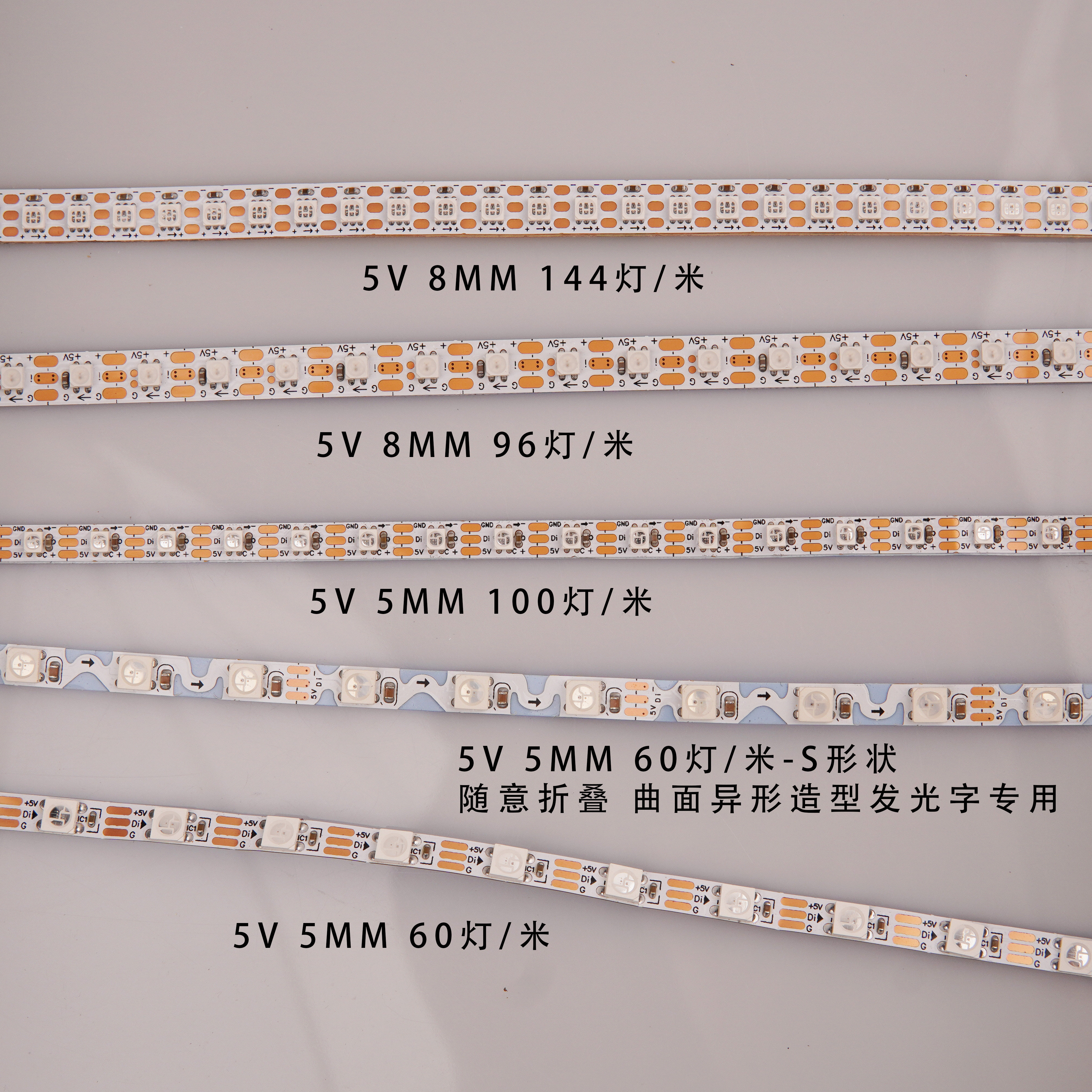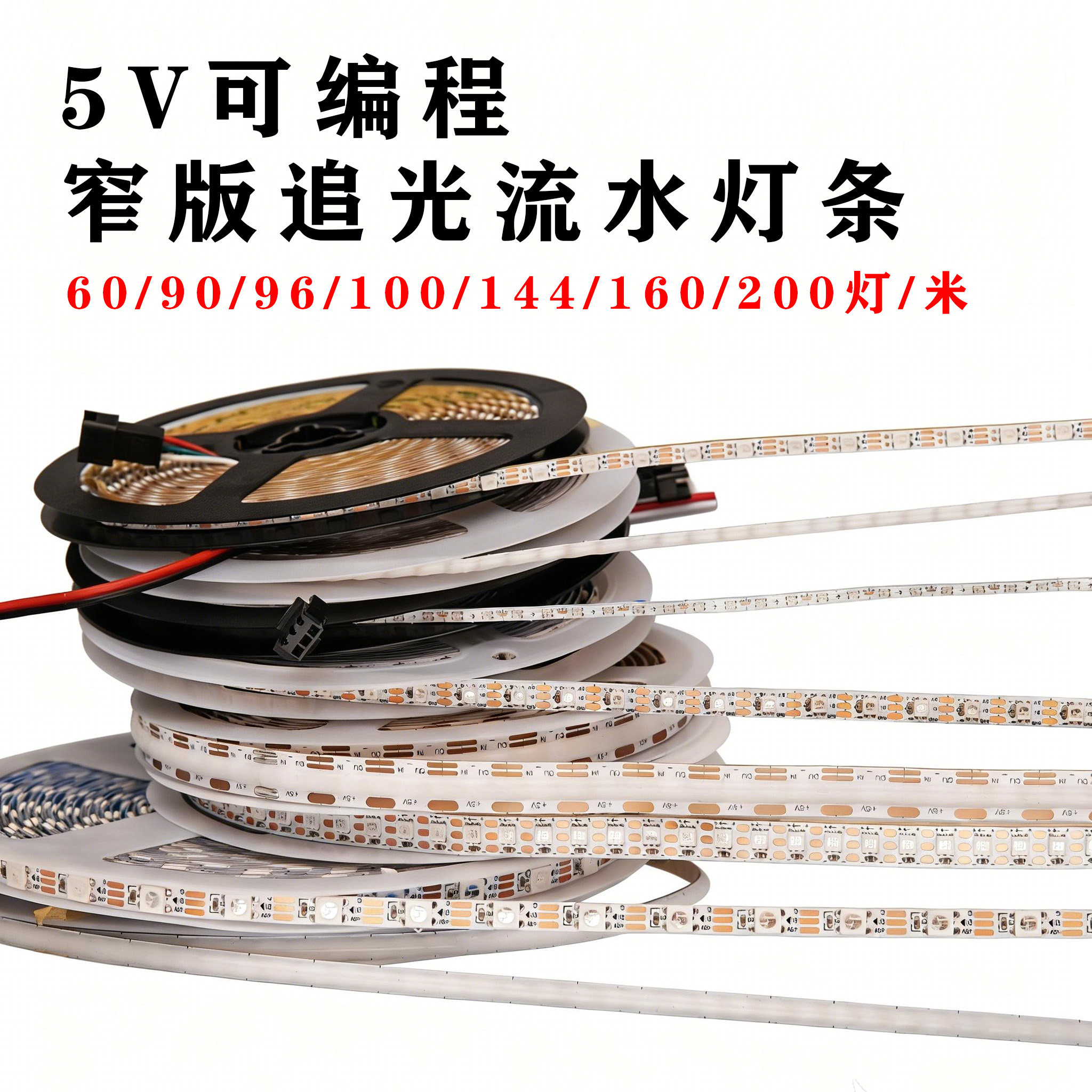 📚 WS2812B可编程窄版全彩跑马灯条5V幻彩七彩RGB追光流水装饰灯带
