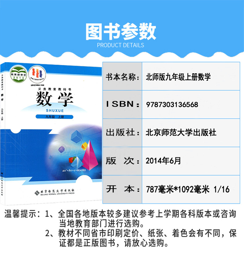 79¥ CZ193 J1Sg5SZ6Mj4¥ https://m.tb.cn/h.ir291gf 正版2023新版人教版初三九年级上册语文英语北师大数学全套3本课本教材教科书9年级语数英九年级上册全套3本主科人教版九上全套 --------------------- 【原售价】59.8元 【现售价】39.8元。