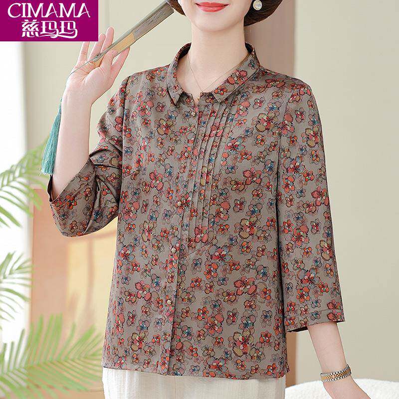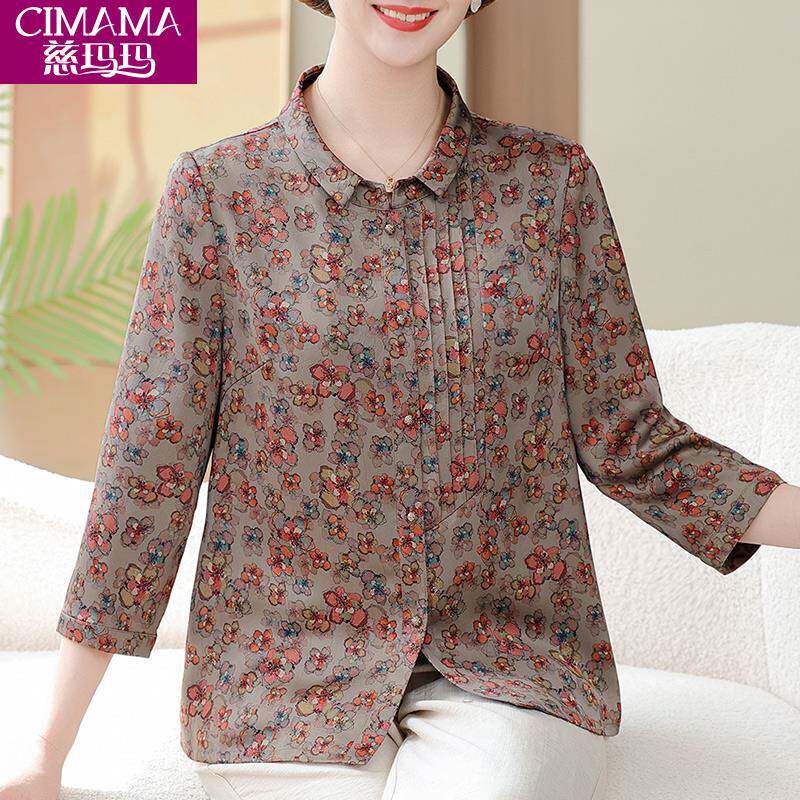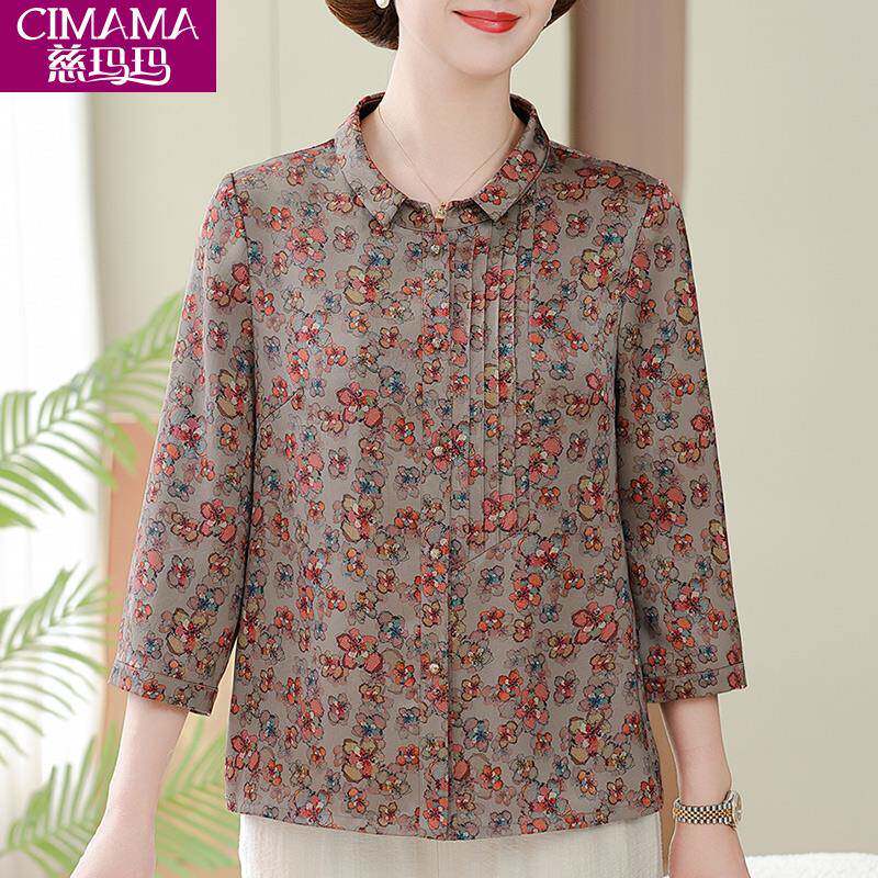 📚 妈妈夏季衣服2025新款中袖衬衣中老年上衣女夏装洋气减龄花色衬衫