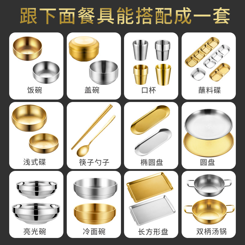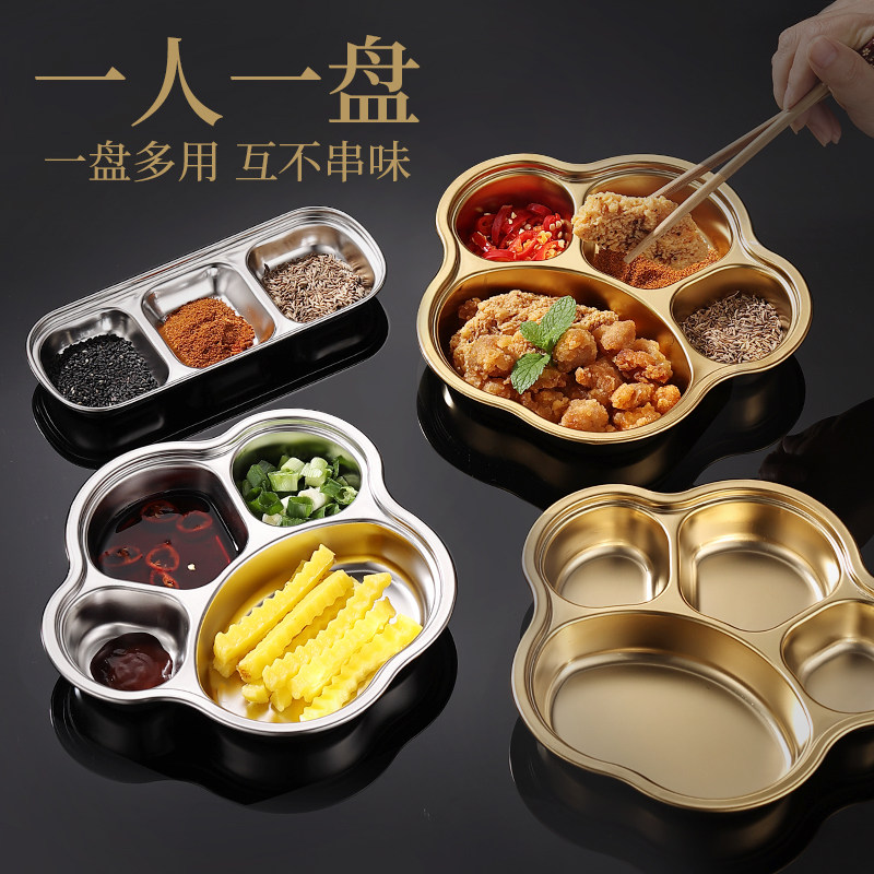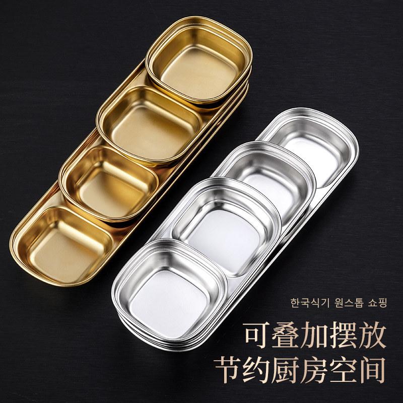 📚 304不锈钢韩式味碟烤肉餐具蘸料碟火锅调味酱料碟烤肉盘两格三格