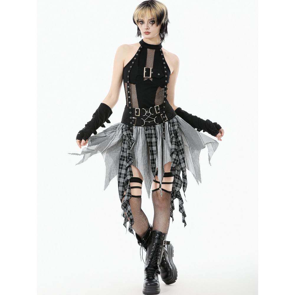📚 DARK IN LOVE哥特女装 黑白格子拼接机车裙 KW411