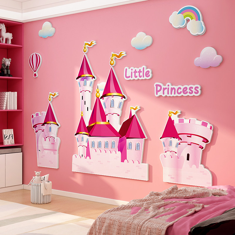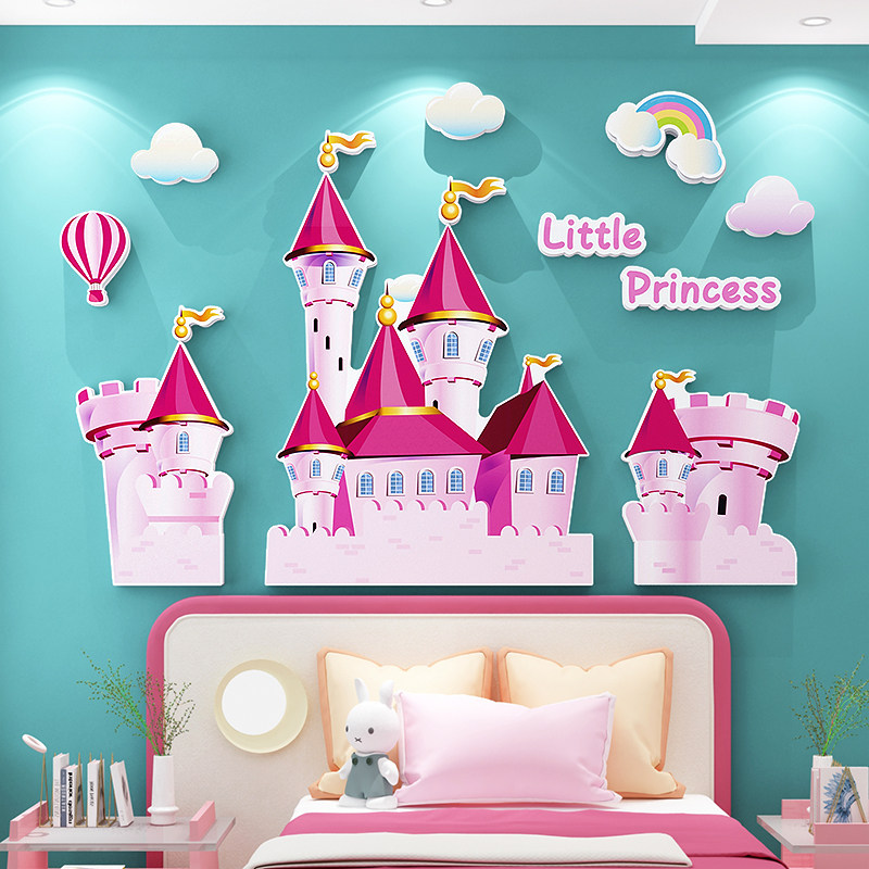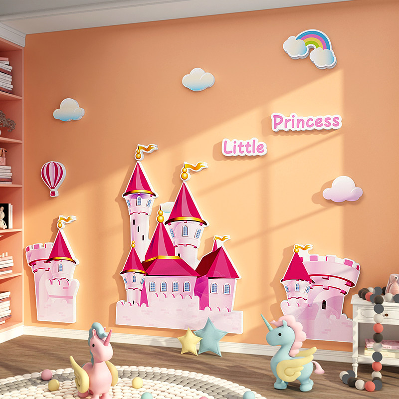 📚 公主房间儿童娱乐场背景布置全套女孩卧室床头城堡kt板装饰墙贴纸