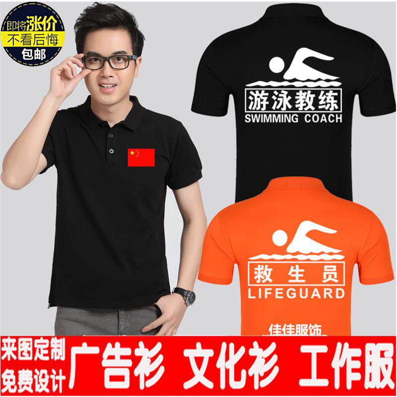 📚 私人教练T恤工作服定制健身房游泳馆救生员短袖POLO广告衫印logo