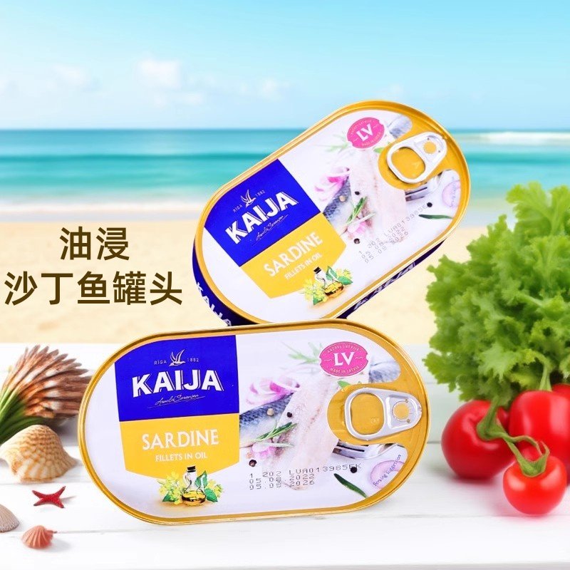 📚 三文鱼罐头芥末进口即食海鲜下饭菜沙拉油浸鲱鱼沙丁鱼熏制下酒菜