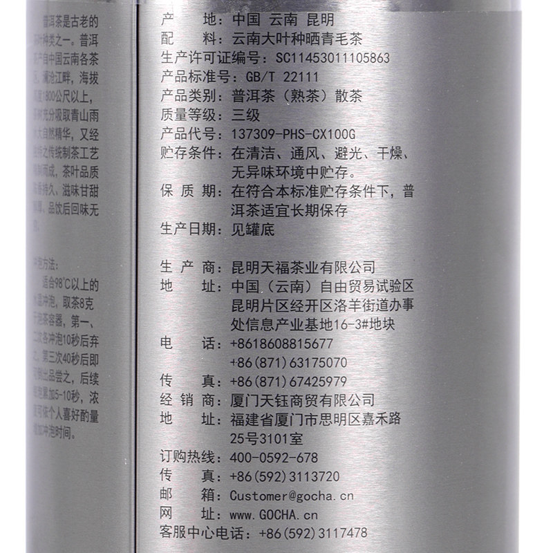 📚 天福天心茗茶常享普洱茶云南澜沧江大叶种熟普散茶罐装茶叶100g