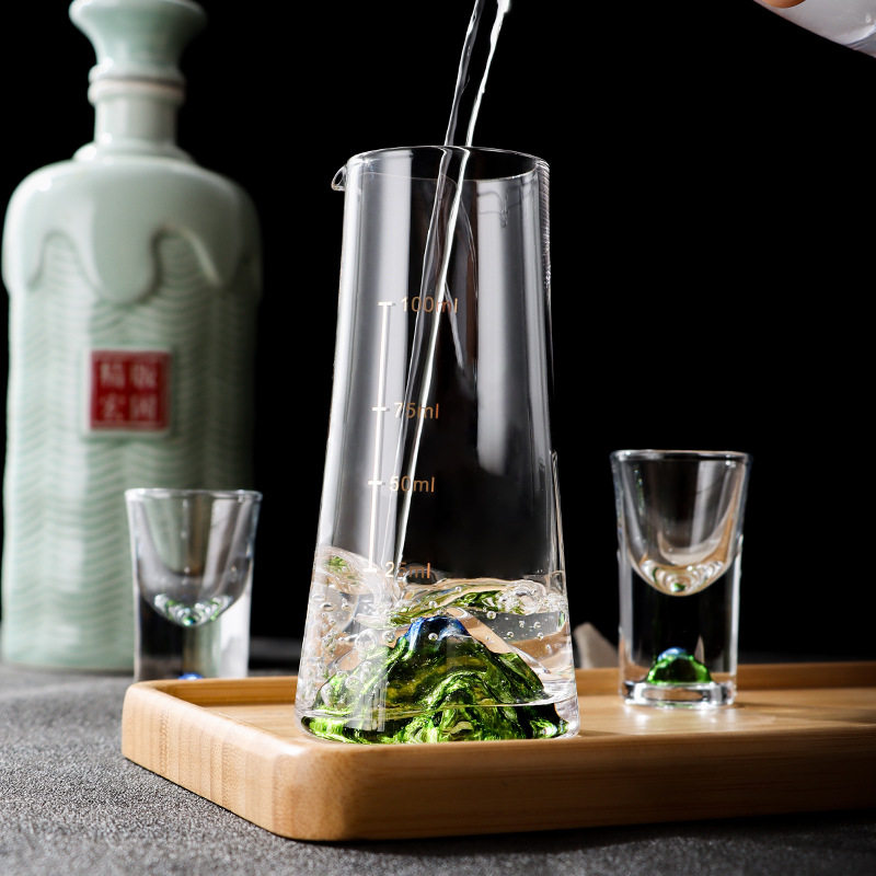 📚 中式观山白酒杯千里江山玻璃烈酒杯子冰山创意国潮分酒器青绿酒具