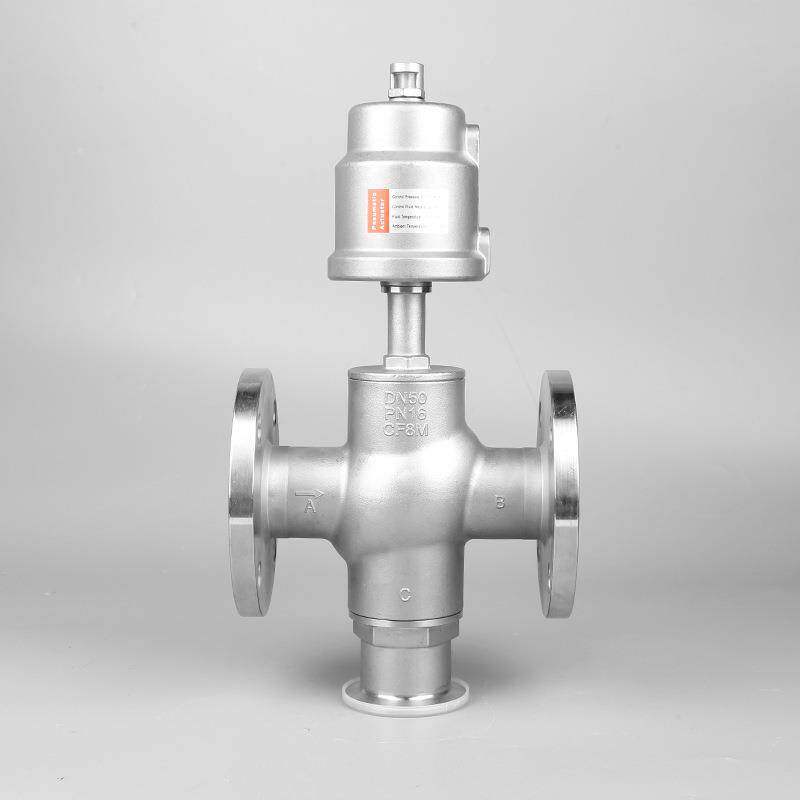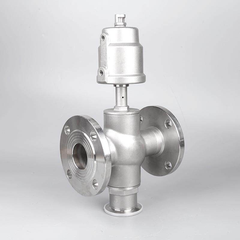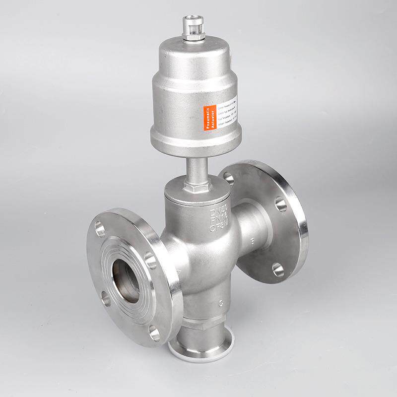 📚 348应角供座阀三通流道双层弹簧法片加垫厚缸体兰气动防滴漏
