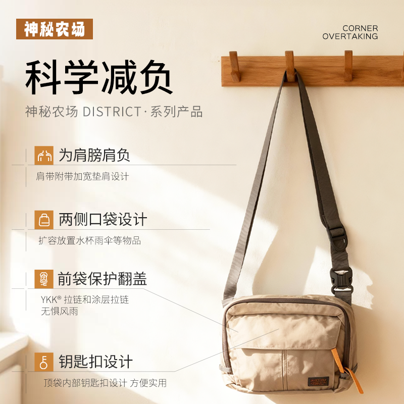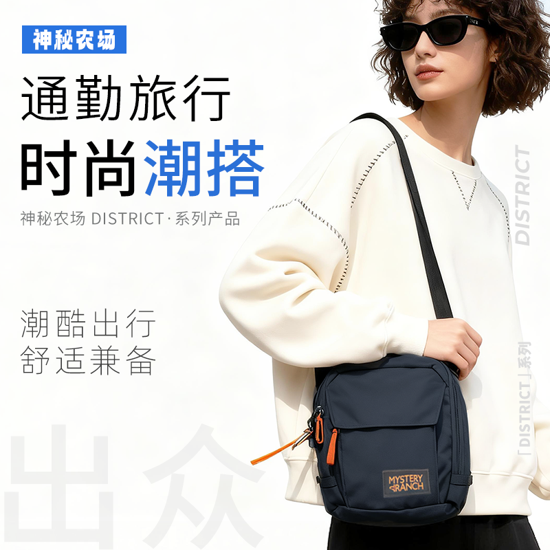 📚 神秘农场District系列斜挎包黑色休闲手提包通勤拎包便携单肩背包