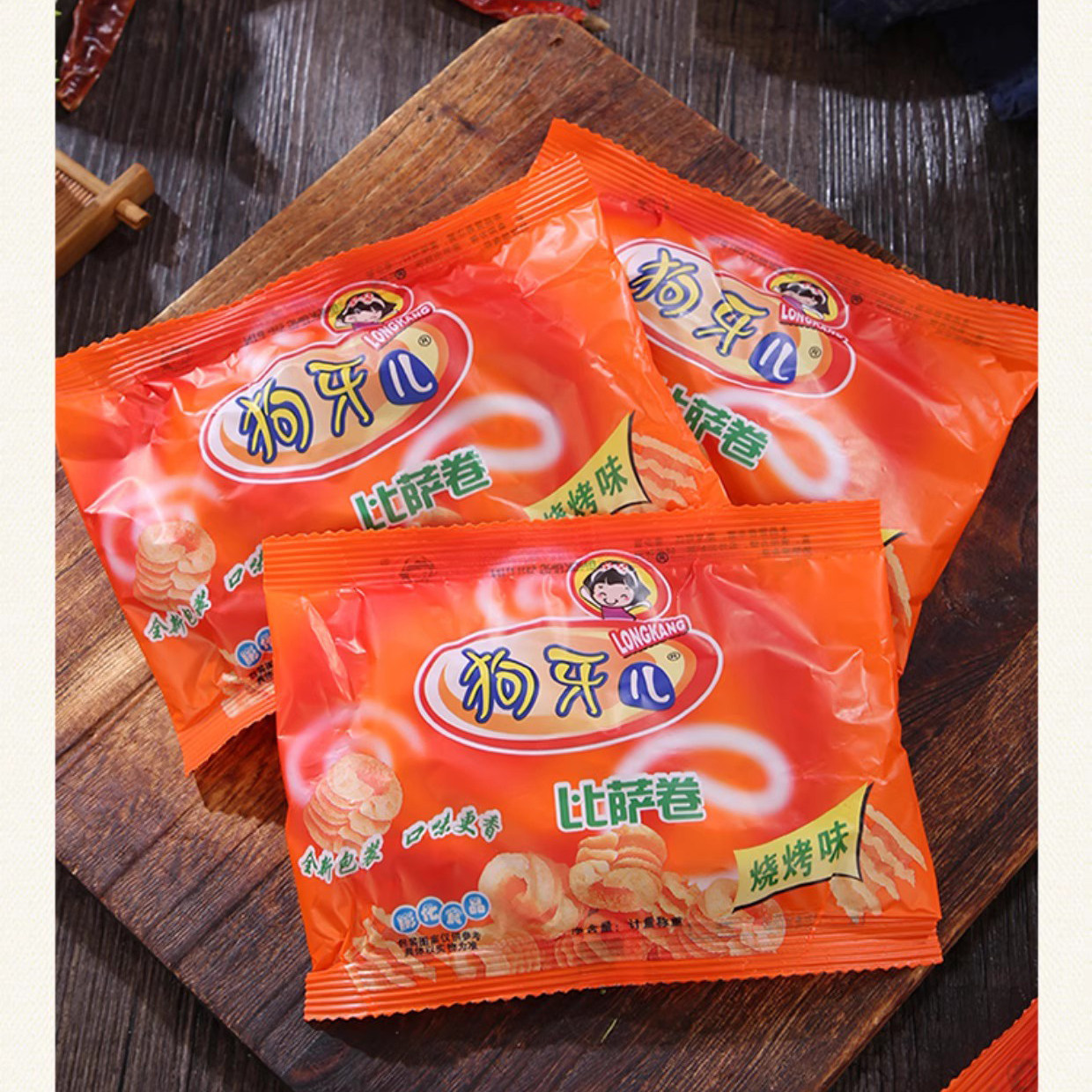 📚 狗牙儿比萨卷披萨卷烧烤味锅巴8090后童年怀旧膨化零食小卖铺小吃