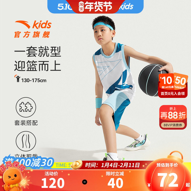📚 安踏儿童套装男童篮球服背心短裤两件套2026夏新款速干短装比赛套