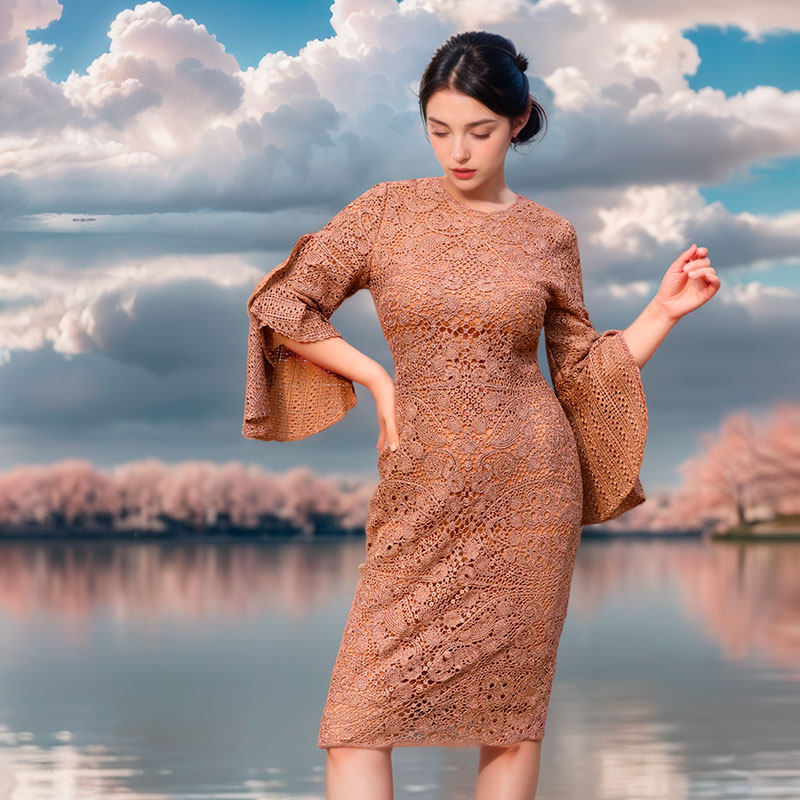 👀一穿上它,仿佛整个世界都为我亮起了光芒。三千纷繁的设计,每一处都充满了精致与细腻,仿佛在诉说着一种无法言喻的美。金丝线重工的蕾丝更是增添了几分高贵与优雅,气质修身收腰的设计更是凸显出女性的曲线美。钩花镂空的设计更是增添了几分神秘与时尚,让人一眼就能被吸引。七分喇叭袖的设计更是显得十分时尚大方,无论是日常穿搭还是出席重要场合,都能轻松hold住全场。