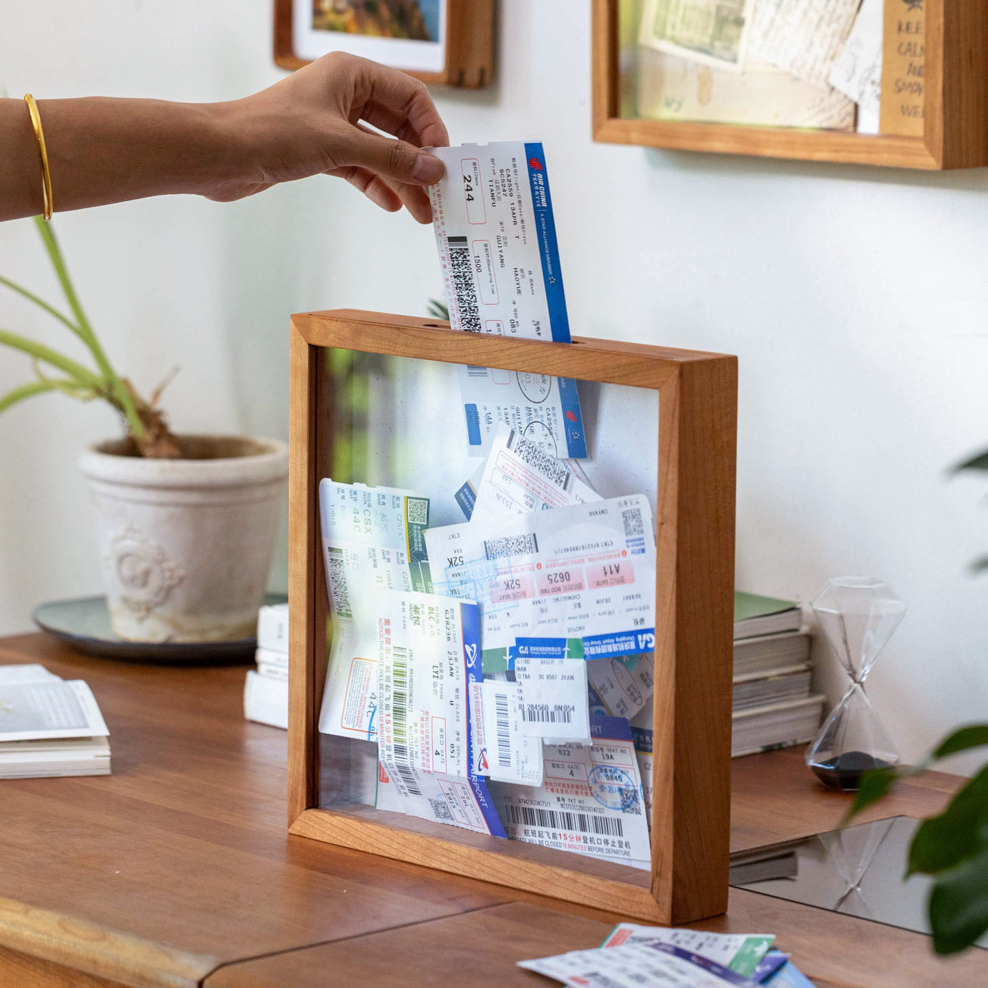 📚 票据票根收纳相框实木墙面壁挂装饰框立体中空车票收藏纪念展示框